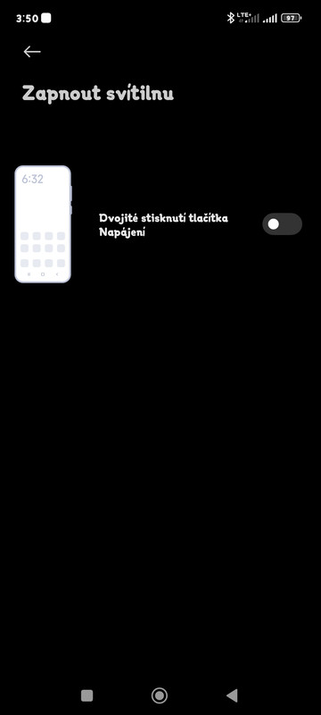 Nastavení > Další nastavení > Zástupce gesta > Zapnout svítilnu > rozkliknout > Zap/Vyp gesto