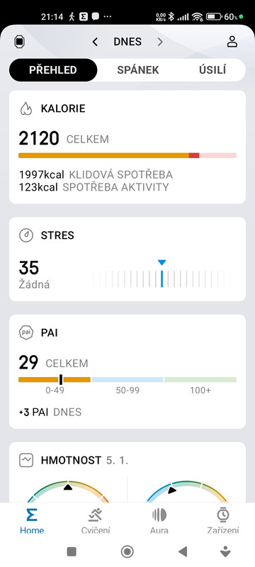 Proto mě právě překvapuje že ty kalorie jsou tam strašně nehodnocene. Denně mezi 1200 a 1600 kcal aktivních. Což je podle me úplně mimo když si dám třeba jen poklidný 4km vyklus.