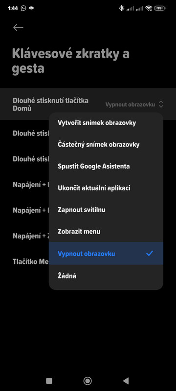 Píši k tomuto tématu a znovu jej oživím. Sám hojně využívám funkci „Vypnout obrazovku“ aktivovanou z Nastaven> telefonu > Domovská obrazovka > Systémová navigace i Tlačítka i Zástupci tlačítek > Klávesové zkratky a gesta.