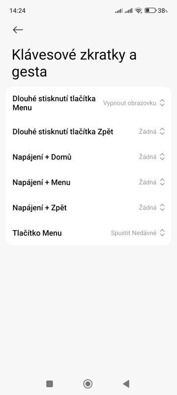 Bohužel, na některých telefonech (například Xiaomi 14T, Xiaomi 13T a evidentně i Redmi Note 13) už v nastavení chybí možnost změnit funkci tlačítka Domů. Přestože telefon stále „vidí“ předchozí nastavení, neumožňuje ho obnovit.