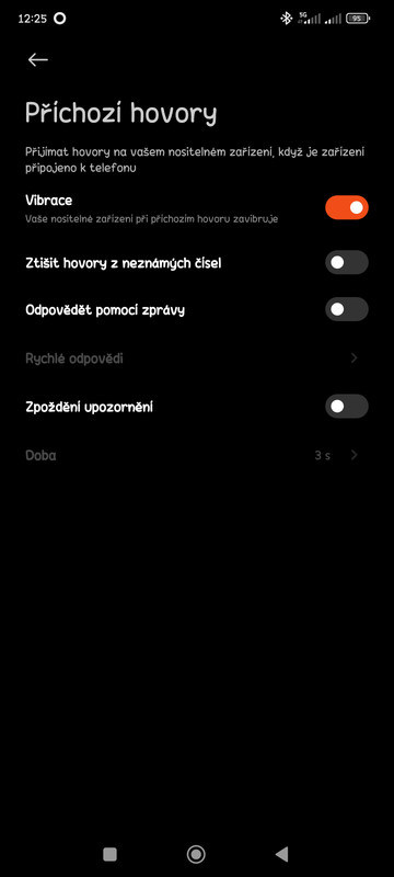 tyto možnosti už mám prozkoumané a proto jsem napsala sem. V příchozích hovorech má pouze možnost nastavení: Vibrací, Odpovědět pomocí zprávy a Zpoždění upozornění. Nic jiného než tyto 3 možnosti nejsou.