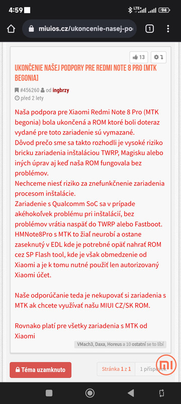 Co se týče MTK a Snapdragon procesorů. Ví se, že s Xiaomi, Redmi a Poco telefony dobře spolupracují Snapdragony. Co se týče MTK, tak tsm už je to horší. MTK Helio jsou osazovány telefony střední a nižší třídy, aby mobil byl levný. Ve střední třídě se MTK Helio dává do telefonů proto, aby mohli takový telefon „pozlatit“, dopřát mu funkci, kterou oplývají mobily s vyšší cenovkou. Je to o tom, že na jedné straně přidáme a na druhé ubereme. To že MTK né moc dobře spolupracuje s těmito mobily dokládá server miuios cézet, kde se združují nadšenci pro telefony Xiaomi, Redmi, Poco a tyto telefony všemožně tuní. Nabízí pro telefony této značky jejich česko/slovenskou ROM postavenou na té originální čínské, která je pravidelně aktualizovaná. Takže tato upravená CZ/SK ROM poskytuje vše, co ta čínská ROM. Bohužel z nepochopitelných důvodů jsou Global a EEA verze telefonu o plno funkcí, které čínská ROM nabízí ochuzeny. A toto je možná alternativa, jak to napravit. Ale zpět k MTK procesorům. Nejdříve na miuios cézet poskytovali přesné návody, jak jejich upravenou ROM nahrát do telefonů jak s procedory od Qualcommu tsk MediaTeku. Návody spolehlivě fungovaly u telefonů s procesory Snapdragon, kdežto z procesory MTK se často s mobilu stávala cihla, těžítko na stůl. Po těchto zkušenostech zcela upustily od instalací jejich ROM pro telefony s MTK a návody k instalaci s odůvodněním proč, neposkytují.