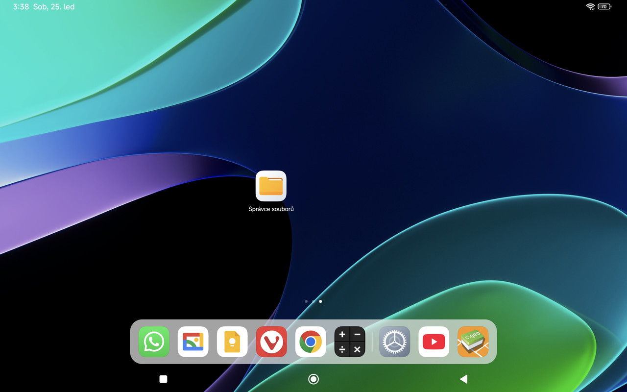 Prvá věc proč nemůžete ikonu aplikace Správce souborů na ploše najít je ta, že se vám „někam zatoula“. Nechtíc jste na ikoně té aplikace Správce souborů držela prst a táhla jste jej po ploše displeje. Došlo k tomu, že jste ikonu app Správce souborů přetáhla přes ikonu aplikace, která byla umístěná vedle aplikace Správce souborů. Touto akcí se vytvořila na ploše displeje složka, do které se tyto dvě aplikace schovaly. umístily. Ukáži vám to na příkladu.