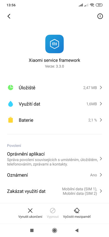 jedná se o systémovou aplikaci Xiaomi service framework. Je skutečně od Xiaomi, popis její funkce však nemáme k dispozici.