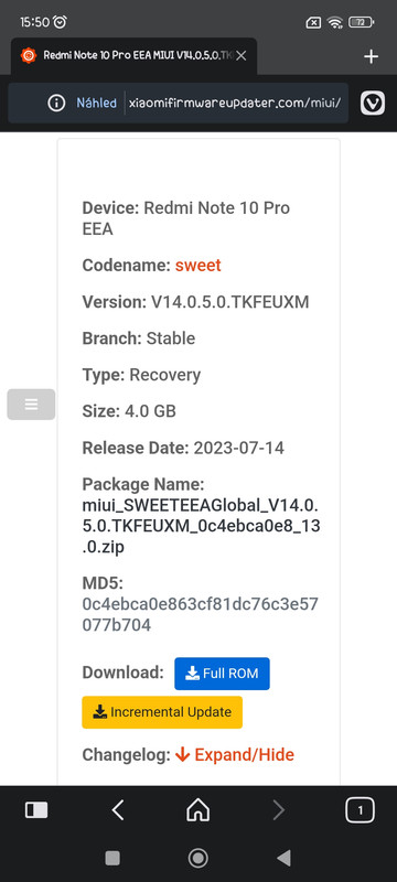 Dobrý den pane Kiliane. Také mám z vašeho eschopu xm.cz dva Redmi Note 10 Pro EEA a z webu xiaomifirmwareupdater. com jsem po celou dobu co tyto telefony mám jsem ručně stahoval aktualizace. Ať šlo o Stable Beta nebo Stable verze, vždy je mobily přijaly a šly nainstalovat. Naposled jsem takto bezproblémově  instaloval V14.0.3.0. (TKFEUXM). Verze poslední aktuální pro tento telefon 14.0.5.0.(TKFEUXM) už nainstalovat z tohoto aktualizačního webu nejde. A nejde tato poslední aktualizace nainstalovat ani s jinych webů, které nabízí oficiální Xiaomi (Redmi, Poco) aktualizace nadstavby MIUI. Vždy to skončilo na tom, že aktualizace nelze ověřit, stejně jak píše pan Brunclík. Nepomůže ani továrně zresetovat telefon, ani si k aktualizaci přes OTA pomoci zněnou Oblasti na Švícarsko / Polsko. Doposud V 14.0.5.0. (TKFEUXM) v telefonu nemám a to už je měsíc vyšlá.  A pro zajímavost. Má poslední V14. 0.3.0. už tou samou verzí přeinstalovat nelze z xisomifirmwareupdater.com.  Zahlásí to, že aktualizace (Recovery) nelze ověřit. Proč, když před tím mi ji oba telefony přijaly. To zřejmě Xiaomi tiše přišlo z nějakou fičurou.
