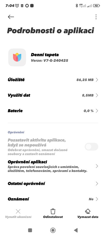 No to jsem původně chtěl udělat ale aplikaci denní tapeta nemám v seznamu správy aplikací. Jediný co chci je abych měl jeden stálý obrázek který si nastavím. Žádné kolování desíti.