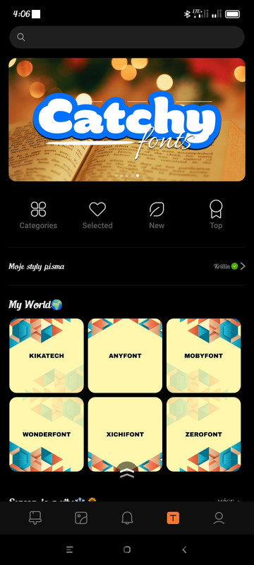 jediné co se povedlo zjistit je to že když v tématech listujete a kliknete na určité téma pak na jeho autora , převážně se objeví nabídka témata a v jednom případě ze sedmi se objeví í nabídka PÍSMO… stahovat jsem nezkoušel ,mám celkem pěkný font