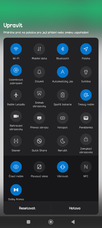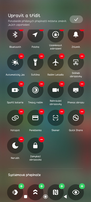 Klinutím na na ten přepínač „Upravit“ se dostanete do nabídky všech přepínačů.