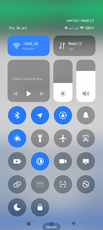 Pokud budete používat to Nové Centrum ovládání, kde nebudete mít tu vámi zmiňovanou lištu s informací o spotřebovaných mobilnuch datech (viz má odpověď na vaši prvou otázku tuná na Poradně), pak pro změnu pořadí přepínačů, jejich odstranění nebo přidání na plochu Centra ovládání stačí na spodu Centa ovládání kliknout na „Upravit“