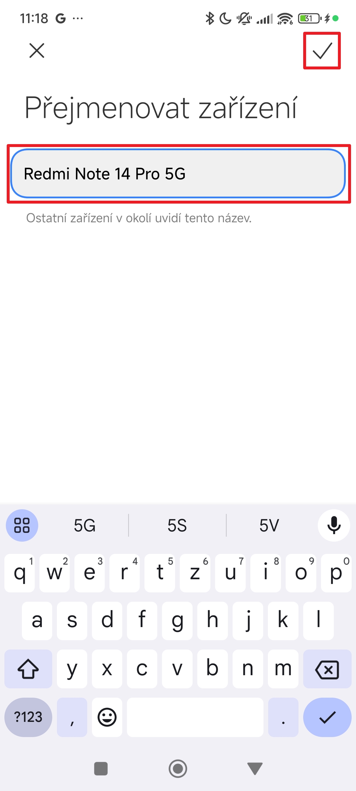 Po otevření této sekce uvidíte aktuální název zařízení, který je obvykle nastavený podle modelu telefonu (např. „Xiaomi 13 Pro“). Klepnutím na něj můžete zadat vlastní název – například „Petrův telefon“ nebo „Redmi pracovní mobil“. Tato změna je užitečné zejména v prostředích, kde je více zařízení stejného typu, protože usnadňuje jejich identifikaci.
