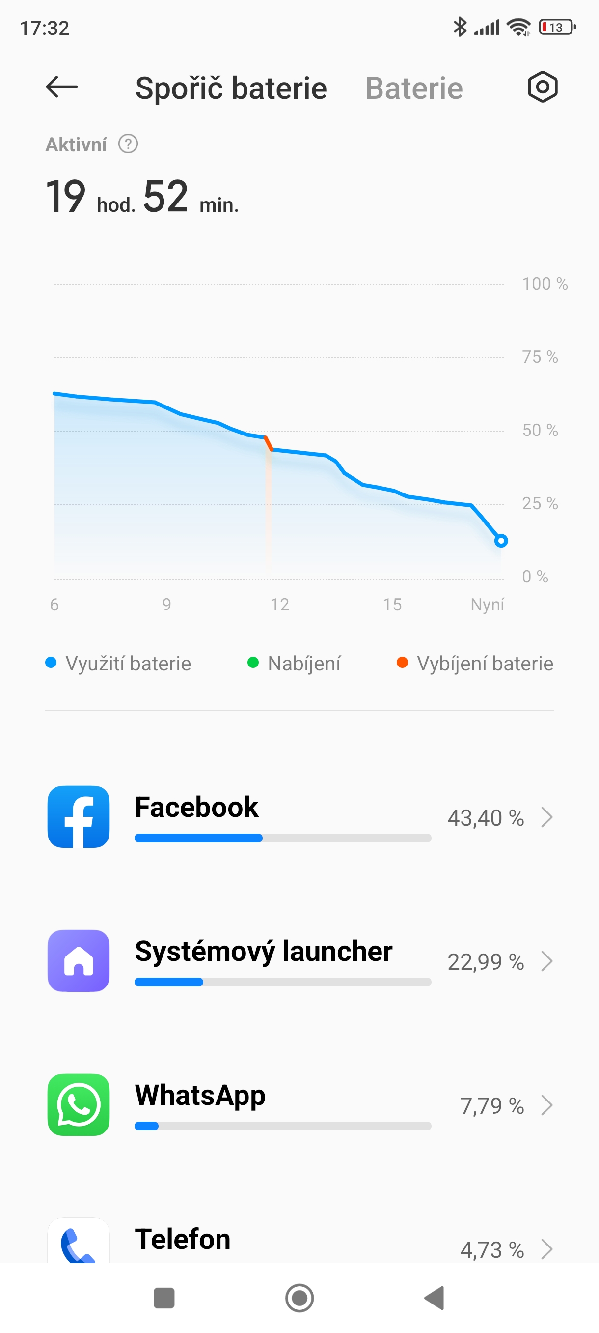 Na začátku jsem zmínil, že v položkách Nedávné mi telefon ukazuje 100% využití RAM. V Nastavení – Aplikace – Povolení – Automatické spuštění na pozadí vidím spoustu povolených aplikací. S každou mnou nainstalovanou další aplikací počet přibývá. Telefon to ale nijak znatelně nebrzdí. Nic se neseká, prohlížení i posuvy jsou plynulé a bez hlubšího zkoumání vážně není poznat zdržení nebo zaseknutí.