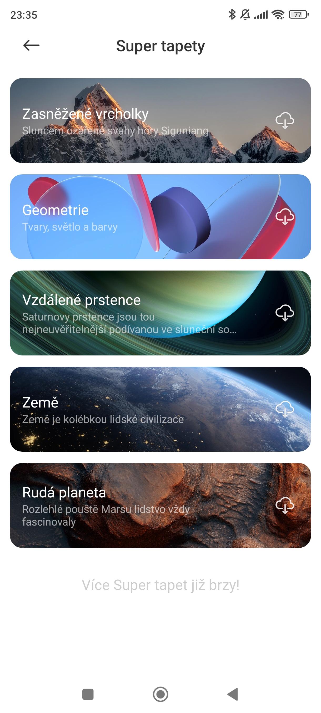 V Super tapetách stále na výběr z pěti možností, prozatím žádné nové nejsou. Ale text „Více Super tapet již brzy!“ zůstal. Tak snad někdy.