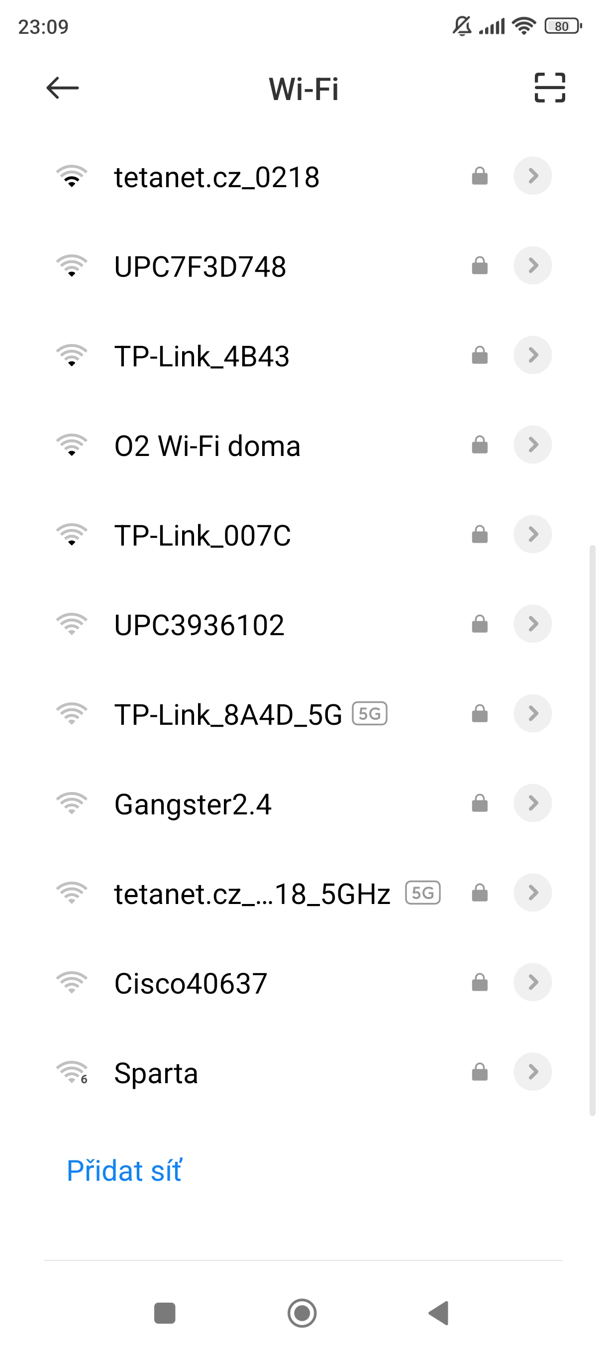 V nastavení Wi-Fi telefon nově rozpozná Wi-Fi 6. Xiaomi 12T ji umí, podle všeho, vysílat, ale netušil jsem, že ji umí i přijímat. Nicméně v názvu se běžně 5G Wi-Fi označuje čtverečkem s 5G za názvem SSID, ale Wi-Fi 6 malou číslicí 6 před SSID vedle kvality či síly signálu. Zde mám pocit, že došlo k opravě nějakých nastavení, protože vidím sítě, které sice znám, ale mám je viditelné až venku na druhé straně baráku. Tedy z místnosti, kde sepisuji tento sloh, vidím běžně do deseti různých SSID, většinu střední až mizivé kvality, ale nyní jich mám kolem dvaceti i když s mizivou kvalitou.