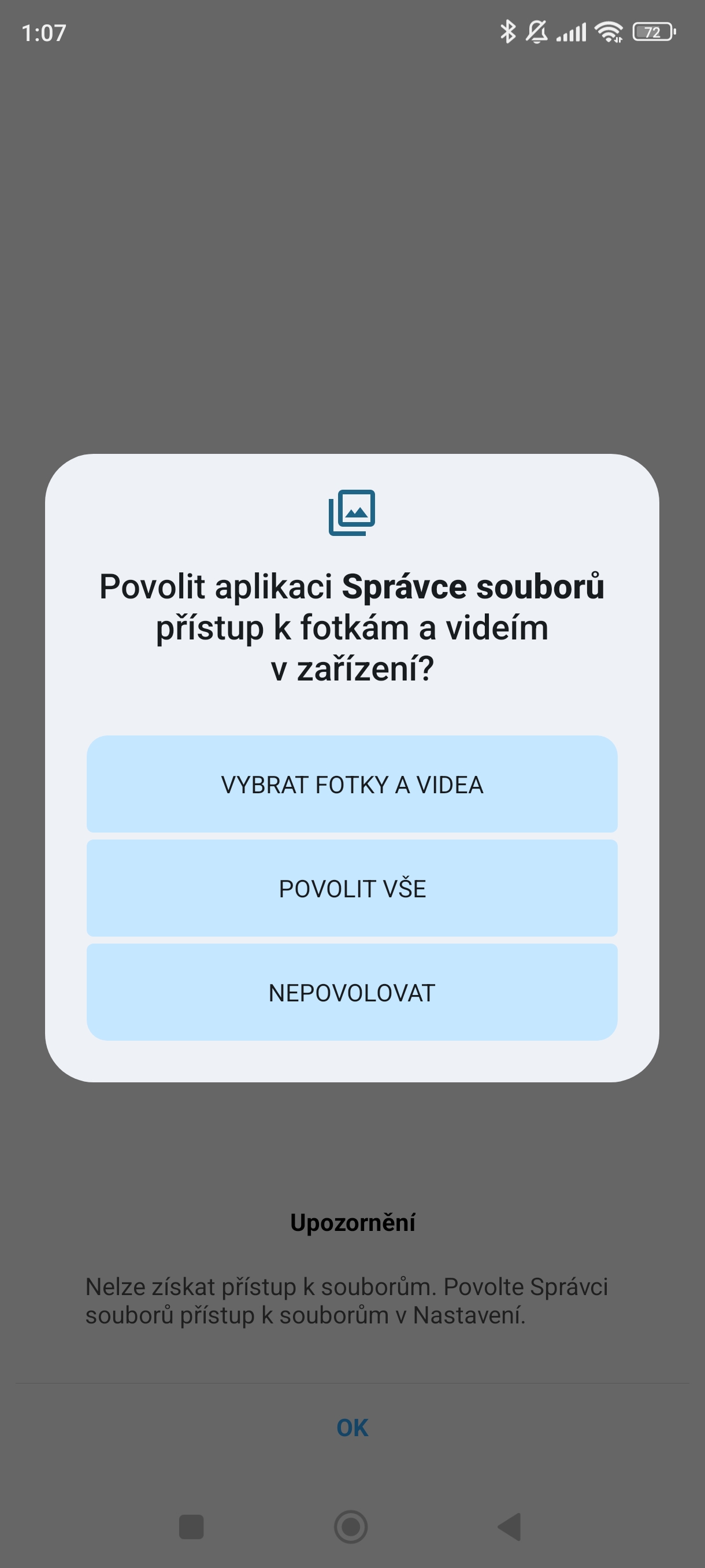 Platby jsem nezkoušel, mám odemčený bootloader a nevěřím tomu v tuto chvíli. Nicméně ikona NFC na Domovské obrazovce stále zůstává skryta a ukáže se až při stažení lišty. Systém zabezpečení povolování osobních souborů zůstal zachován jako v testovací Beta 1, tedy možnost výběru Nepovolit čtení souborů, povolit čtení všech souborů nebo třetí možnost, vybrat povolené soubory ke čtení. Protože jsem se stejně, jako při předchozím testu, rozhodl klikat a klikat a klikat, tak jsem se opět nechal nachytat a dostal se k povolování vybraných souborů. Tentokrát ale bylo možné svou volbu opravit a nic významného se nestalo. Vlastně při volbě vybraných souborů se mě aplikace při novém otevření zeptala znovu se stejným výběrem možností.