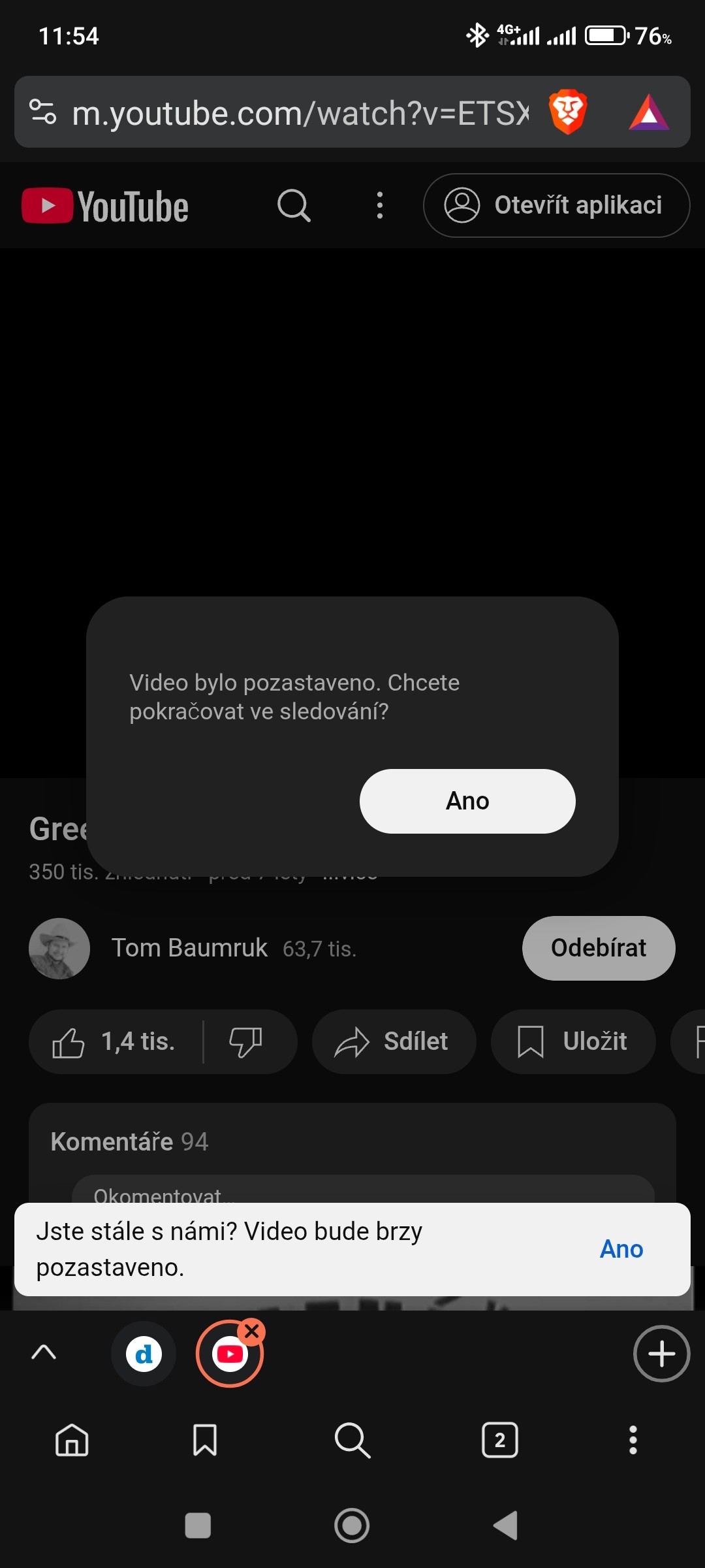 Pozor však, pokud chceš např. YT hodit na pozadí, a jen poslouchat nějaký stream, tak to stále žere data coby komplet video.