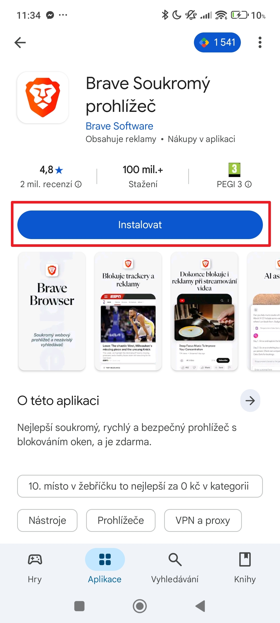 - Přes widget výše či přes tento odkaz si stáhněte a nainstalujte prohlížeč Brave.