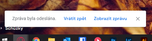 Pokud se rozhodnete, že právě odeslaný e-mail vlastně odeslat nechcete, můžete jeho odesílání okamžitě zrušit kliknutím na tlačítko Vrátit zpět vlevo dole, kde se objeví informace, že zpráva byla odeslána.