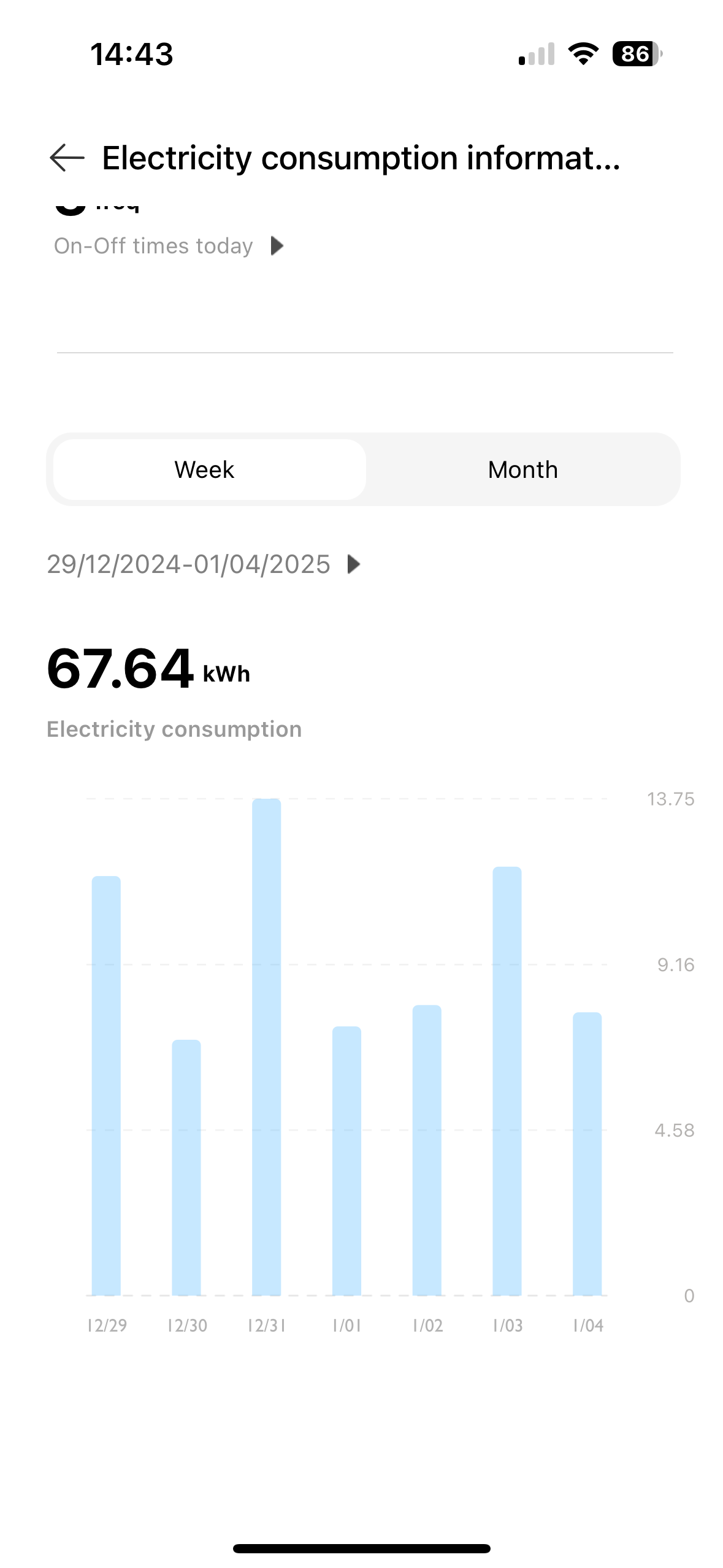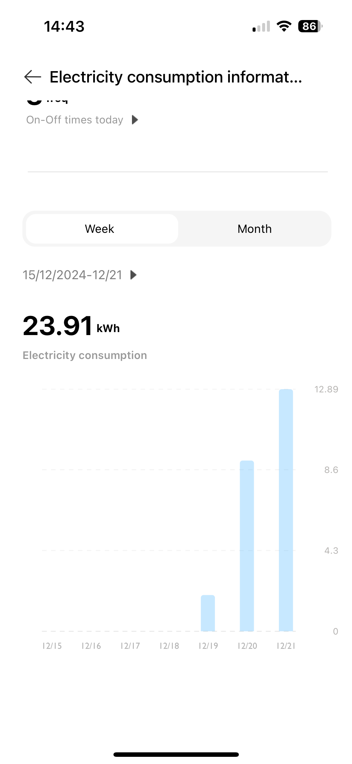 Zmíněná zásuvka umí měřit okamžitou i celkovou spotřebu v jednotlivých dnech. Sledovali jsme situaci v průběhu třinácti dní v období od 20. prosince 2024 do 1. ledna 2025. Výsledky dopadly následovně: