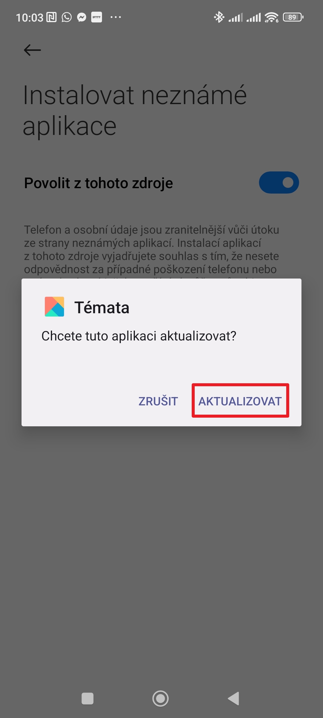 6. Tím se přenesete do sekce Instalovat neznámé aplikace, kde aktivujte přepínač Povolit z tohoto zdroje.