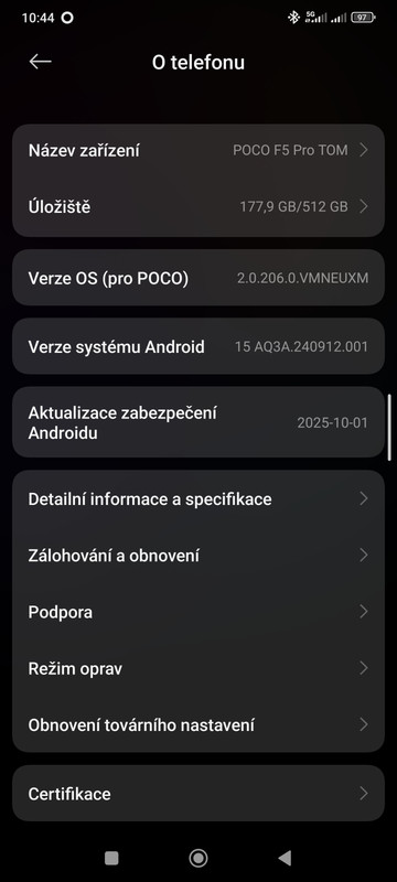 Režim oprav mám už v POCO F5 Pro (HyperOS 2.206.0. VMNEUXM)