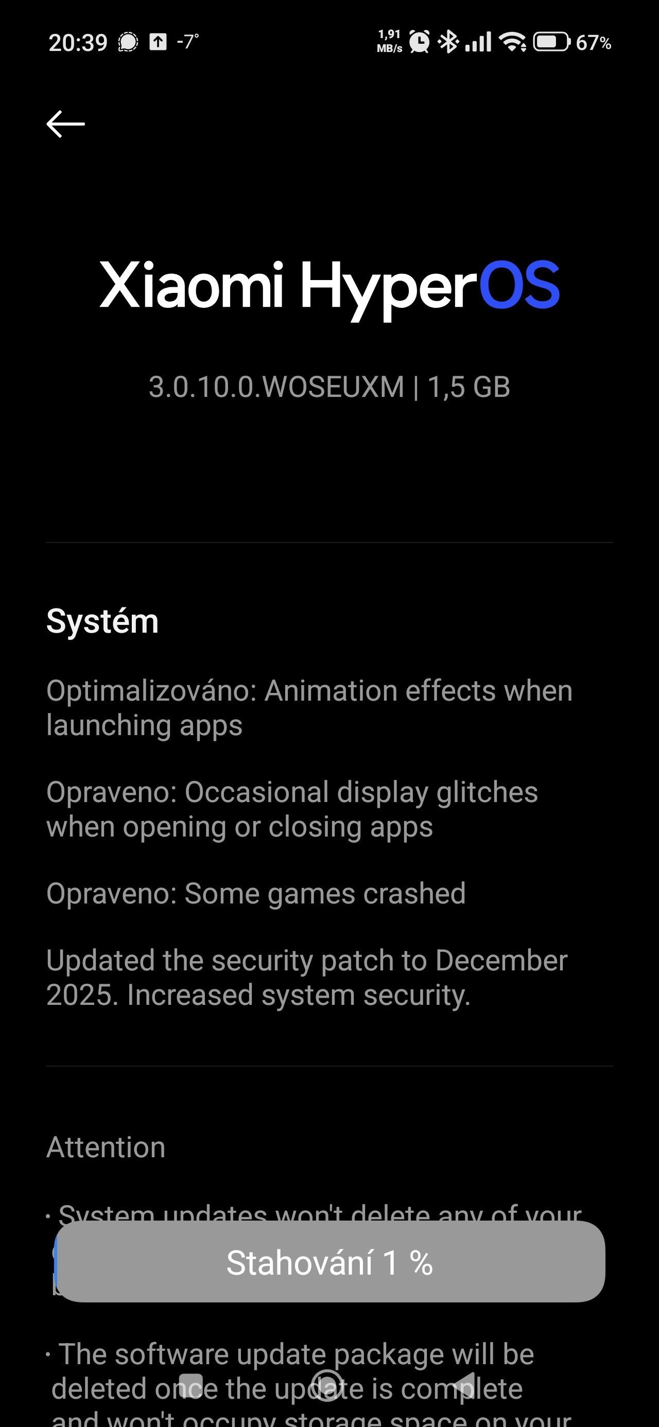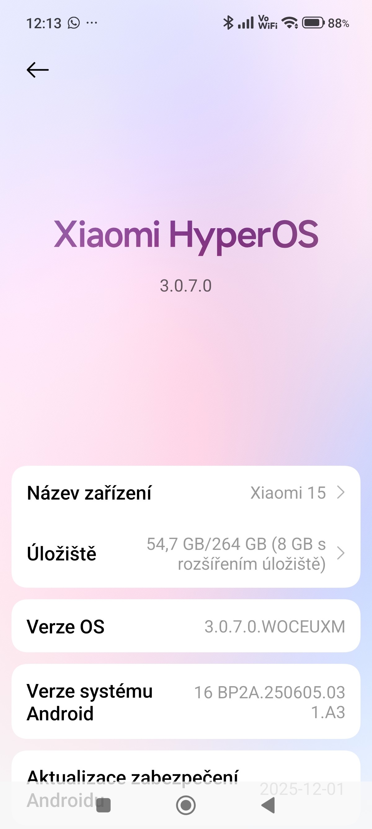 Dobrý den,chybí vám tam v seznamu Xiaomi 15T EU verze. Vyšla 4. Ledna verze 3.0.8.0. WOEEUXM. Ale zatím jsem ji nedostal. Mám telefon od operátora T-Mobile, takže uvidíme kdy dorazí. Akorát mě přijde, že ty aktualizace zabezpečení na tento model vychází snad každé dva týdny. Nejspíš se jedná o aktualizaci zabezpečení na Prosinec. Ale to jen typuju. S pozdravem Martin