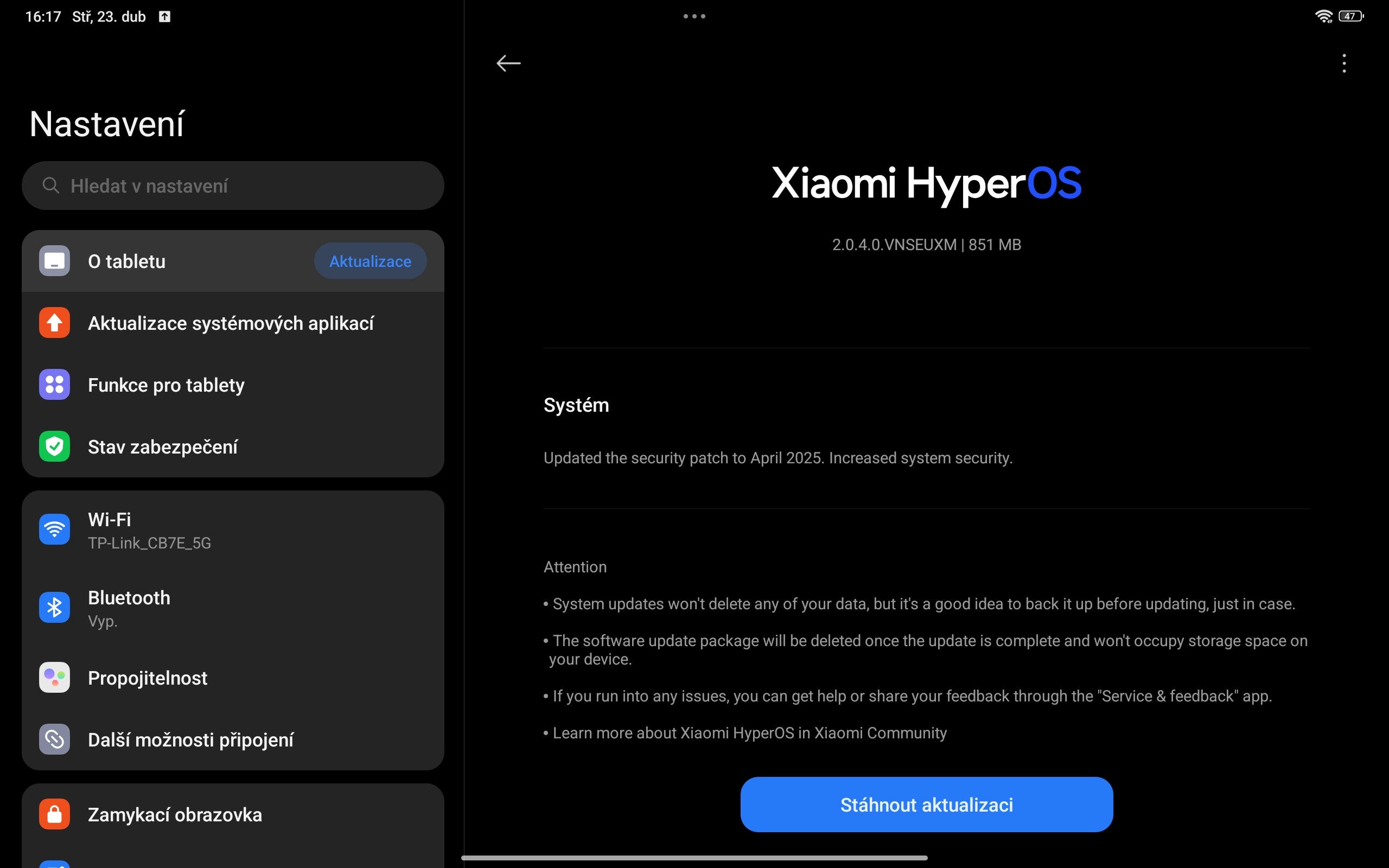 děkuji za informaci a potvrzuji. Aktualizace OS2.0.4.0.VNSEUXM pro evropskou verzi Redmi Pad Pro/POCO Pad vyšla v pondělí 21. dubna. Určitě ji zmíním ve článku, který vyjde v pondělí 28. dubna.