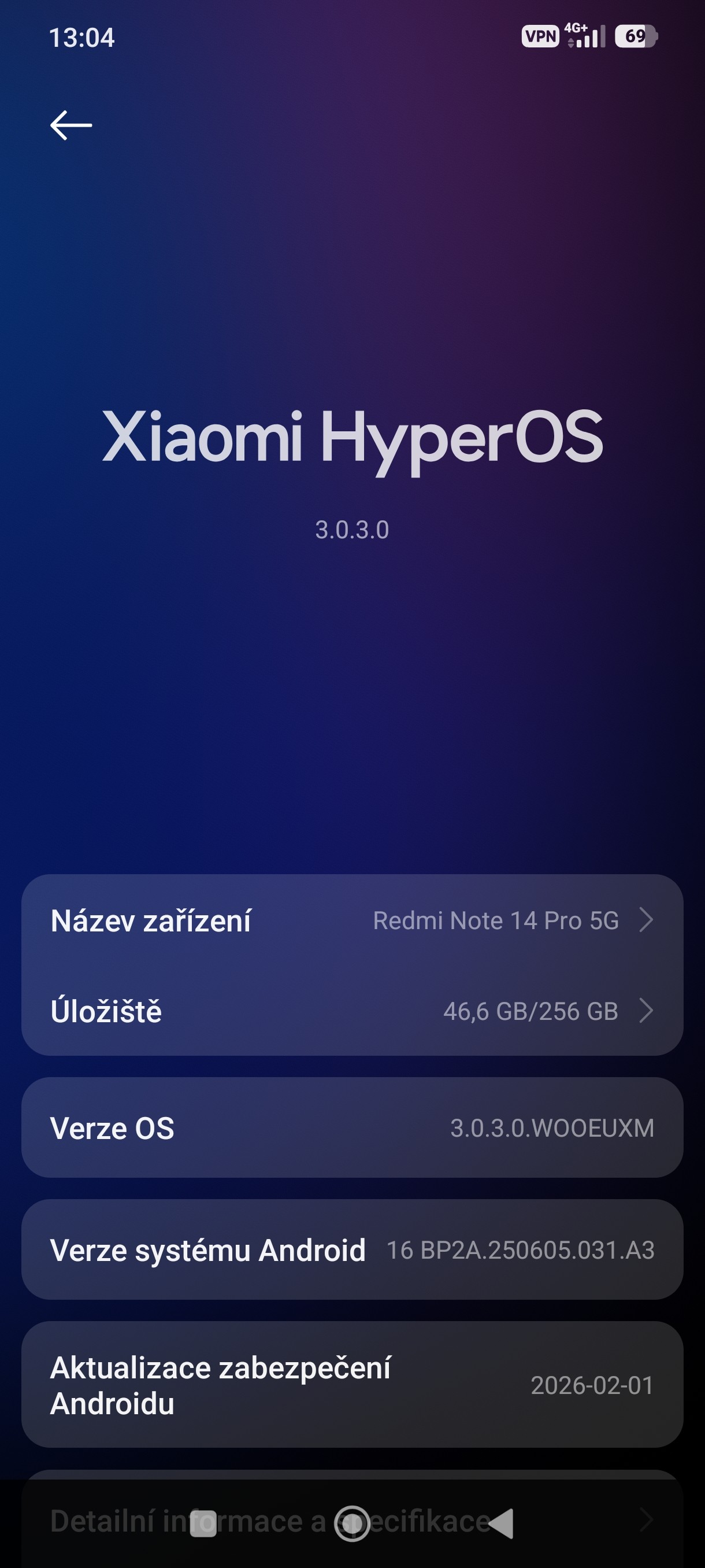 Dnes, 2.2.2026 přišel update na Redmi Note 14 Pro 5G evropská verze.