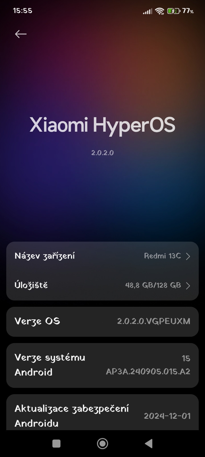 Xiaomi redmi 13c aktualizace hyperos2. Android 15. „Oblast Švédsko“. Pro jistotu jsem restartoval. Nastavení > systém > aktualizovat…