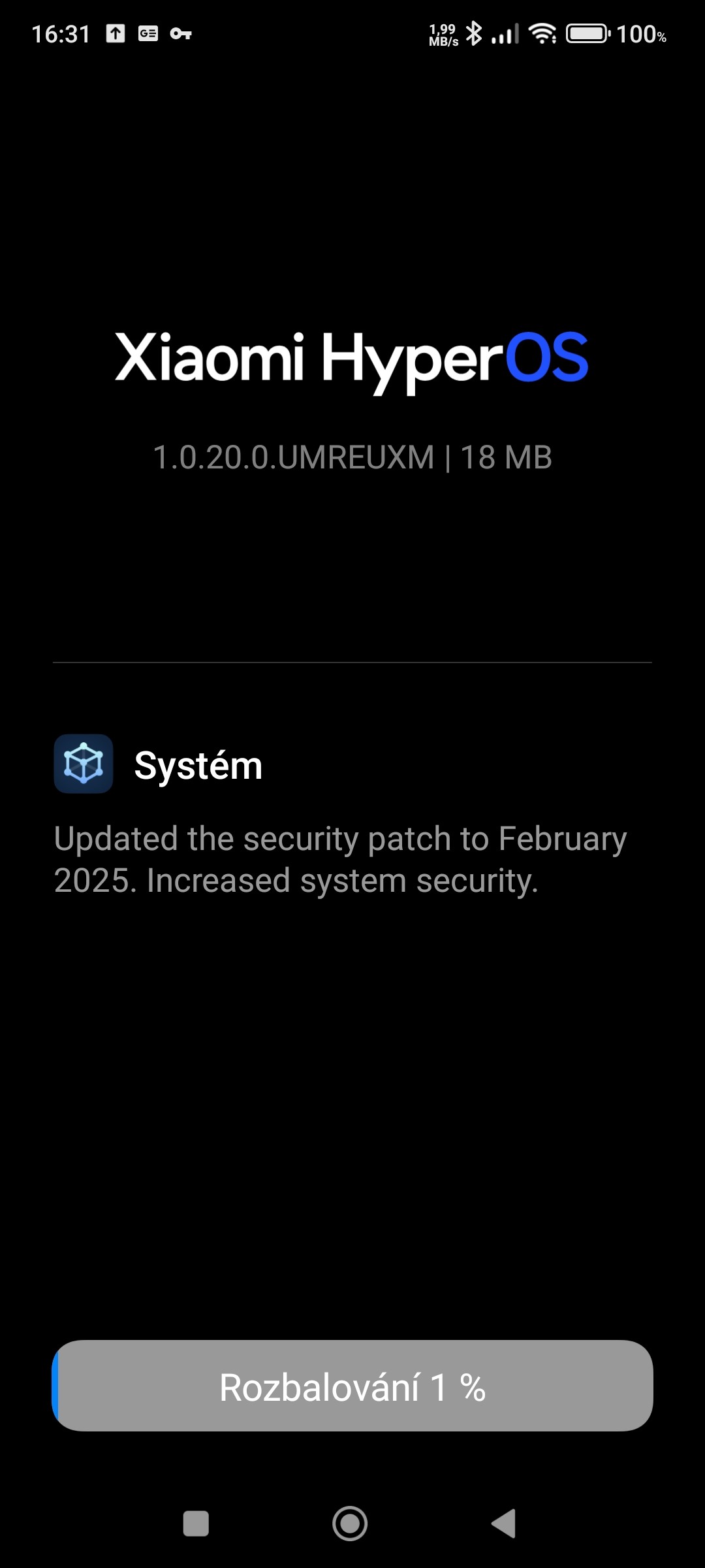 hlásím aktualizaci pro Poco X7 Pro, bezpečnostní záplaty 02/25.