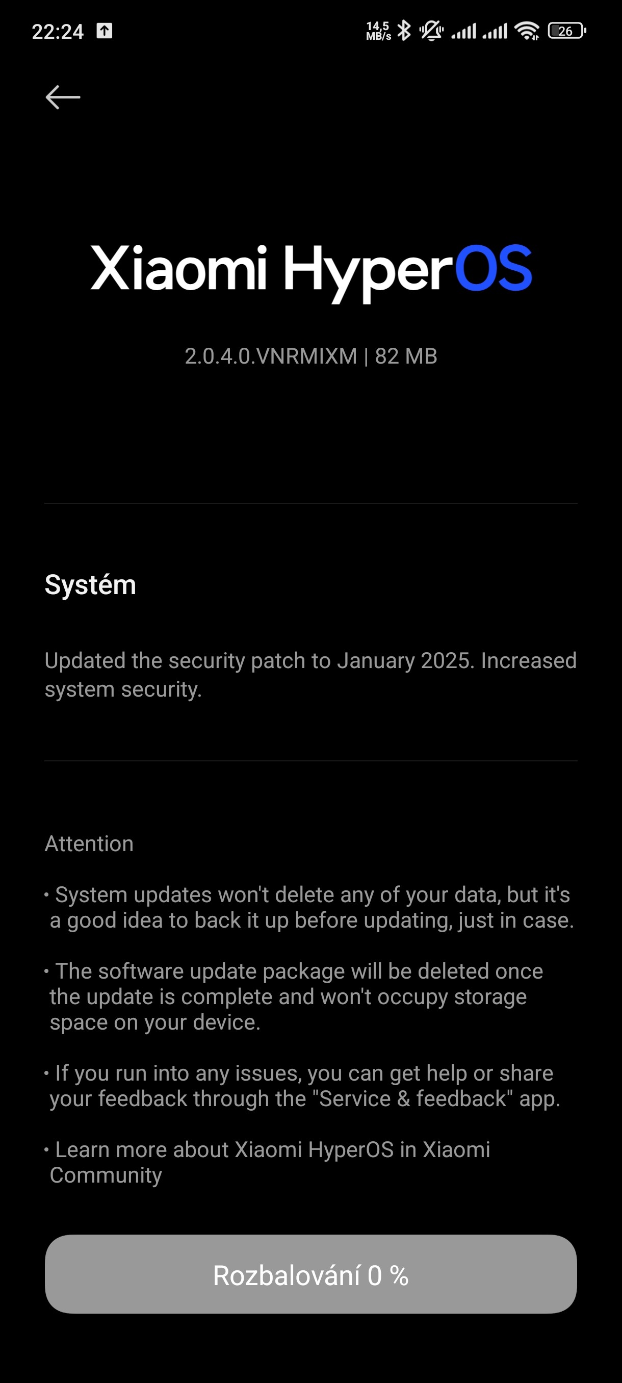 děkuji za informaci. To máte žhavou novinku. Aktualizace OS2.0.4.0.VNRMIXM pro globální verzi Redmi Note 13 Pro 5G/POCO X6 5G vyšla včera, tj. v úterý 25. února. Určitě ji zmíním ve článku, který vyjde 3. března.