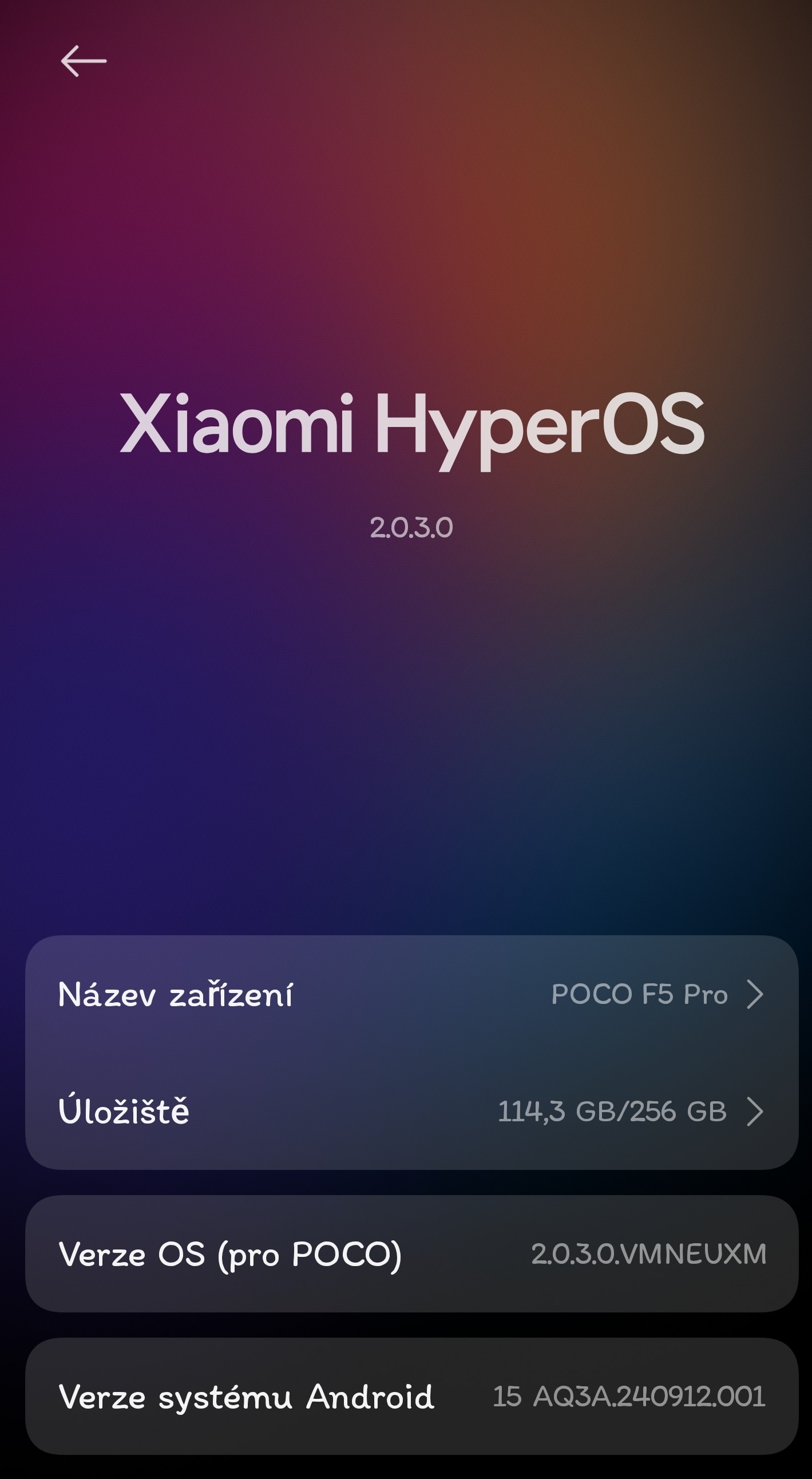 Dnes aktualizováno na HyperOS 2. Poco F5 Pro (evropská verze). Oblast Česká republika.