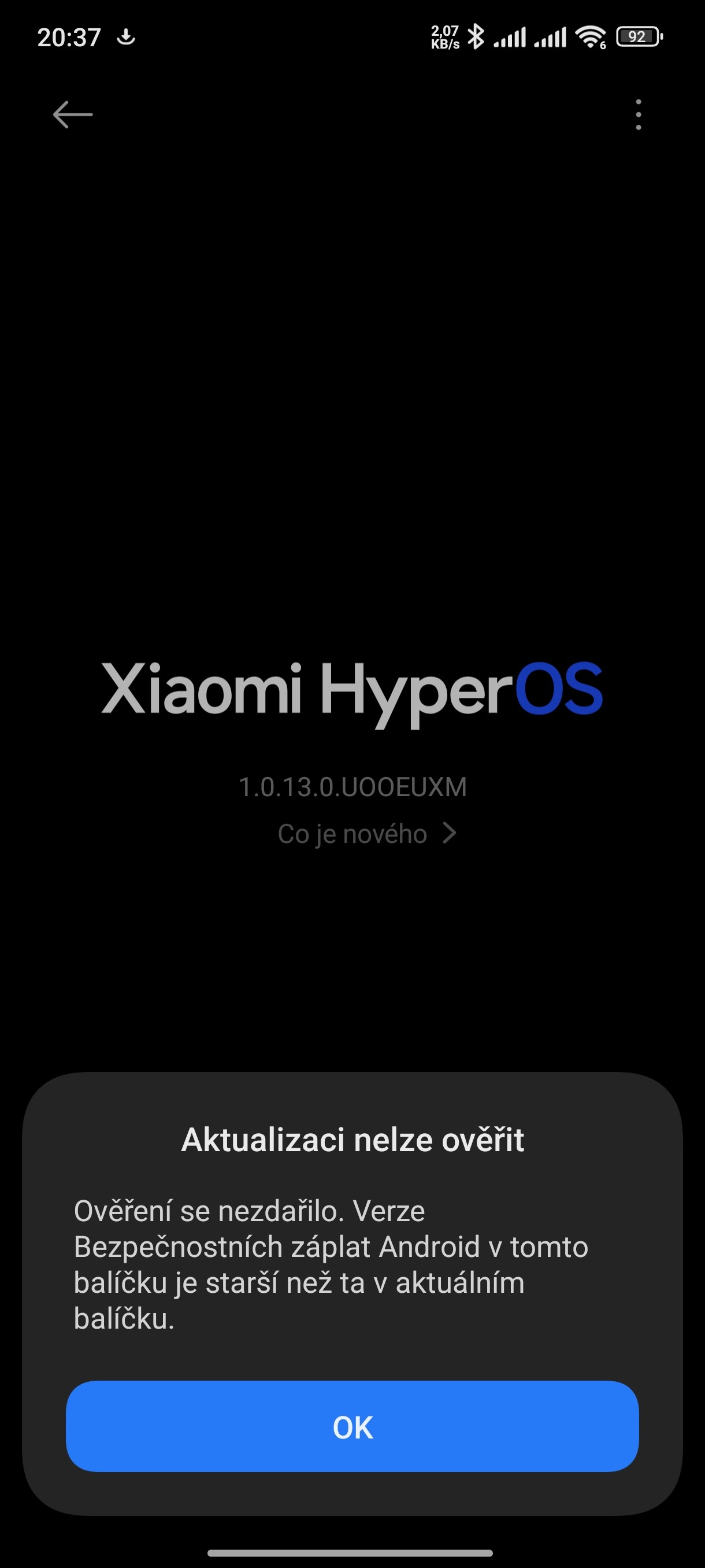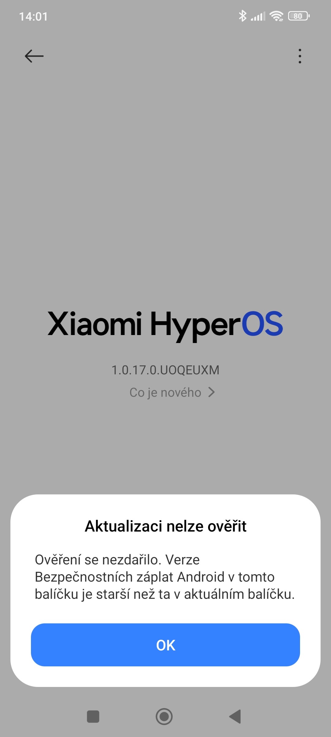 ja mam take stale posledni verzi s Androidem 14 (Redmi Note 14 PRO 5g, 1.0.13.0.UOOEUXM) a zadnym zpusobem se mi nedari ji upgradovat na vyssi. Zbyva factory reset nebo otevrit bootleader a fastboot romky?