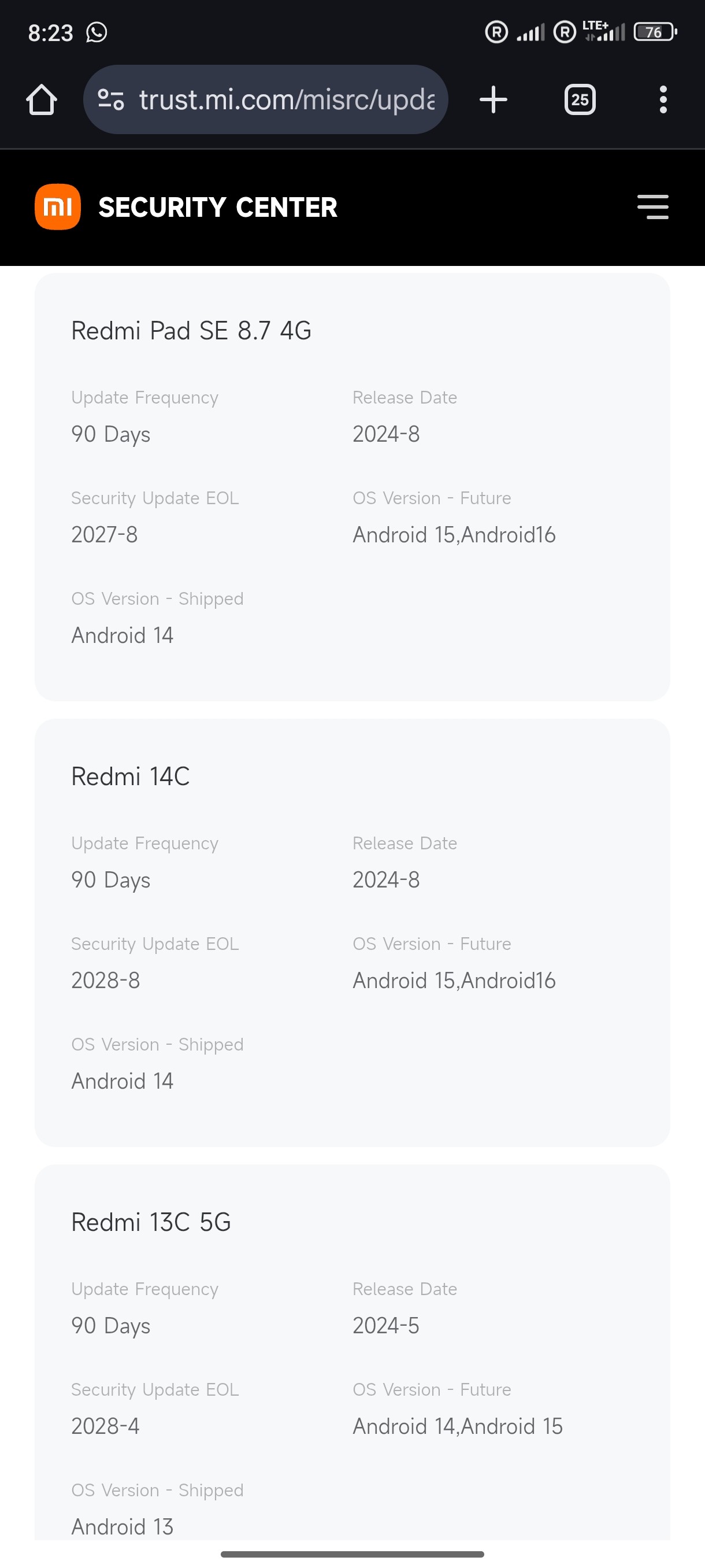 • Redmi 13C 5G (globální verze) dostává od 14. července 2025 aktualizaci na OS2.0.3.VGQMIXM. Jedná se o nadstavbu HyperOS ve verzi 2.0 postavenou na Androidu 15.