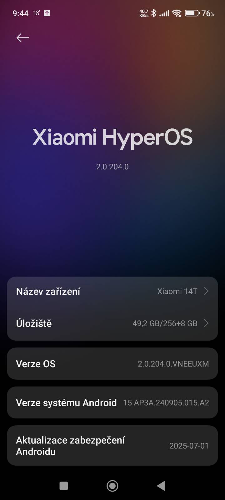 Dnes (28.7.2025) mi přišla na Xiaomi 14T ( 2.0.203.0. VNEEUXM) Android 15, aktualizace na 2.0.204.0.