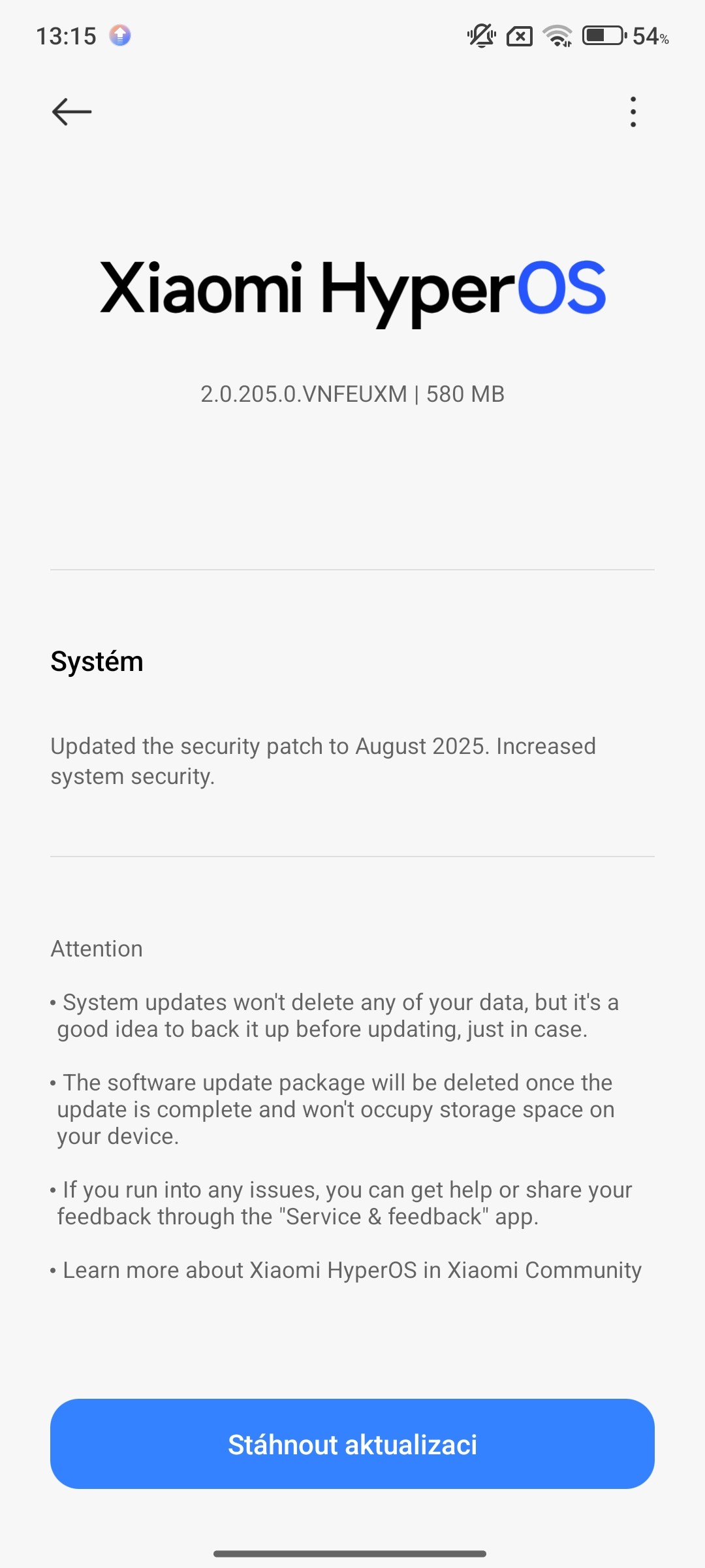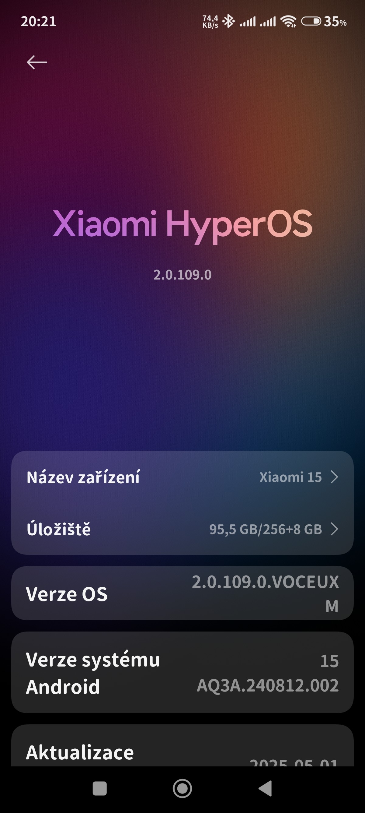 Update pro Xiaomi 15 Ultra dorazila již o týden dříve – datum vydání 4.8., staženo o pár dní déle. Oblast česko, v žádné betě nejsem.