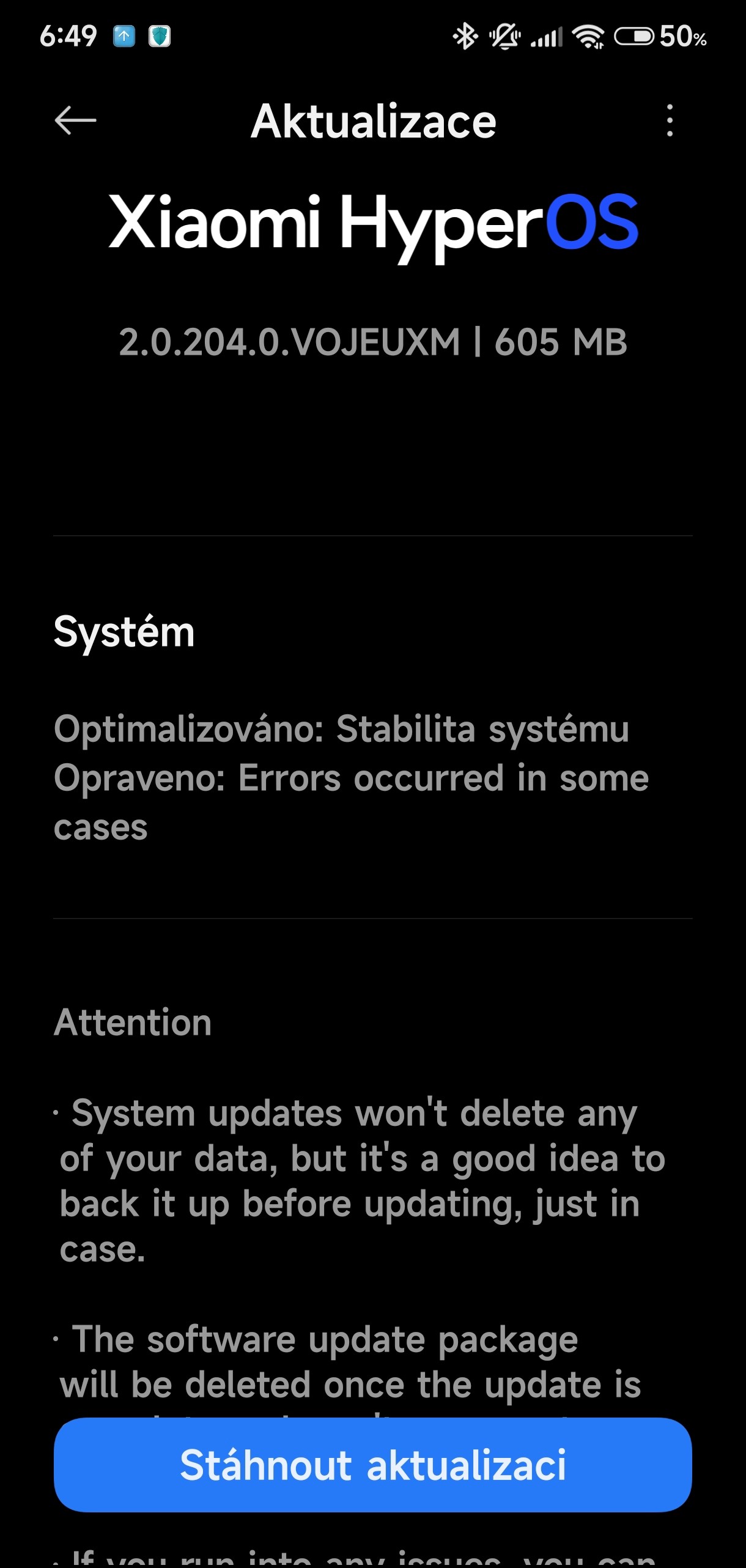 Zdravím a hlásím aktualizaci 2.0.204.0 VOJEUXM pro Poco X7 Pro, vyskočila před malou chvílí..
