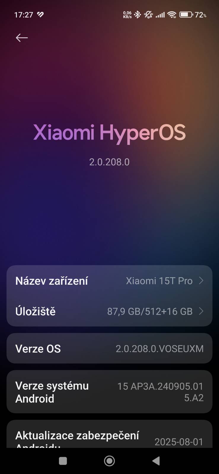 Já jsem hned ve čtvrtek vyměnil svůj Xiaomi 12T Pro za 15T Pro 12/512 a aktualizace OS2.0.208.VOSEUXM byla hned k dispozici.