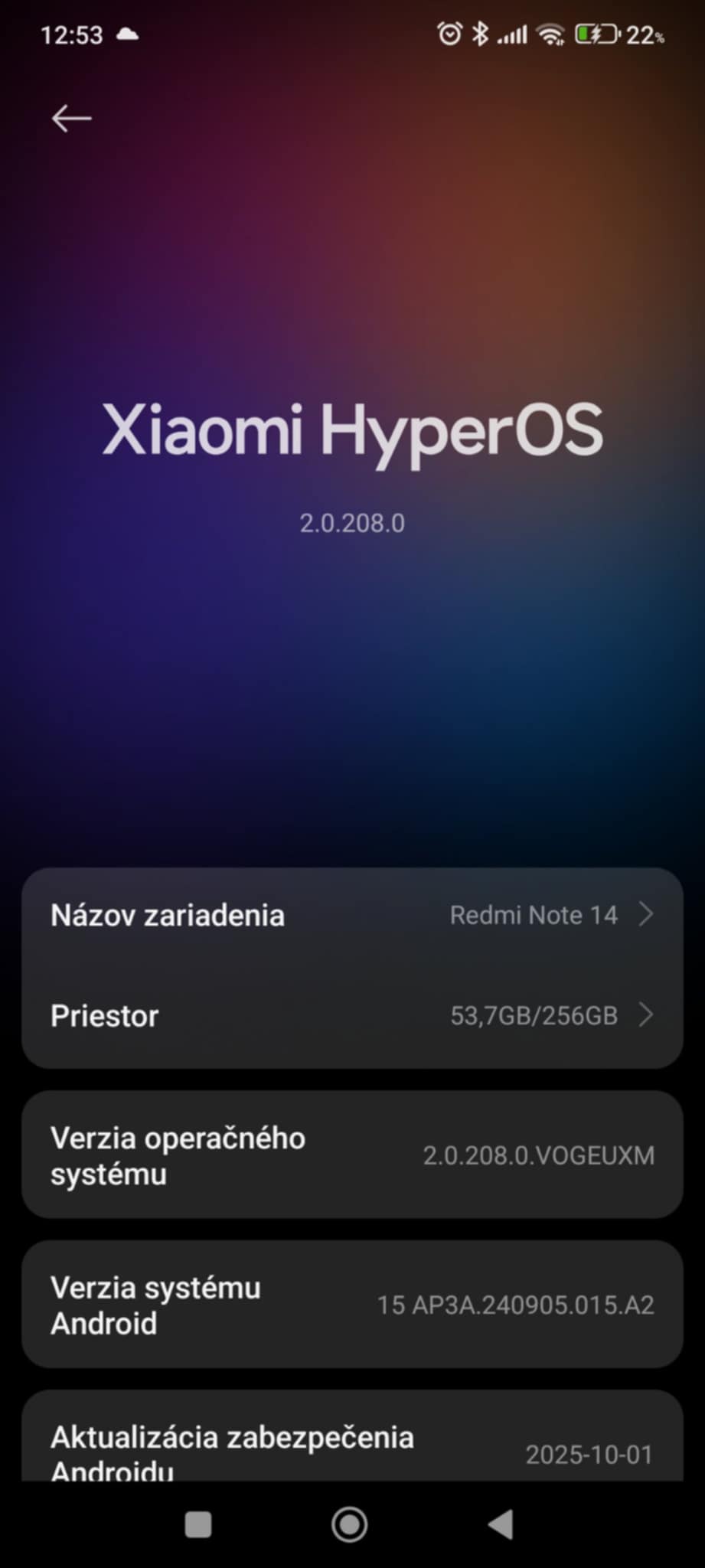 Redmi Note 14 4G, bezpečnostná aktualizácia na verziu 2.0.208.0.VOGEUXM a aktualizáciou zabezpečenia androidu 01.10.2025