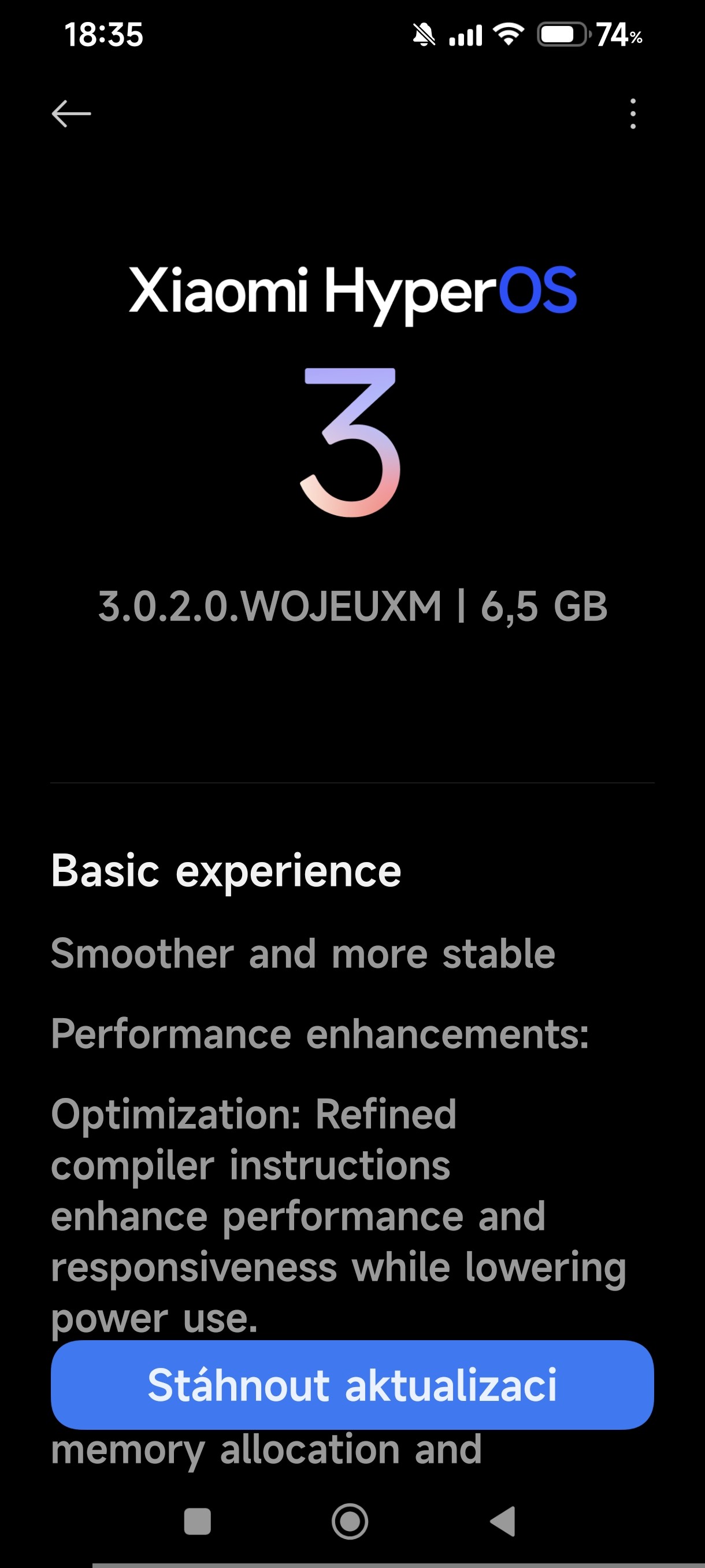 Před malou chvílí na mě vykoukla aktualizace pro mé POCO X7 Pro (evropská verze). Konečně HyperOs 3.0.2.0.! 😁 Velikost 6,5 GB, právě stahuji..
