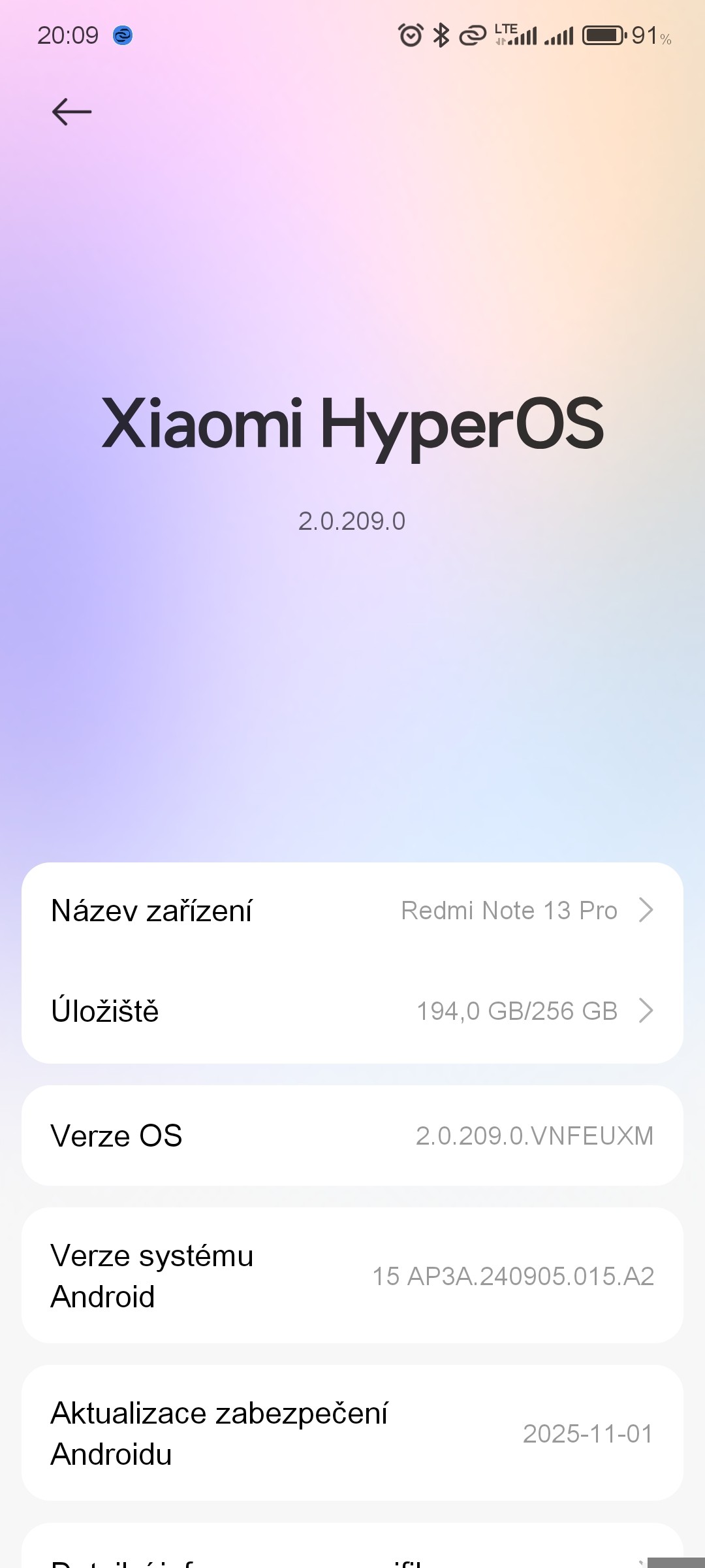 • Redmi Note 13 Pro 5G/Poco X6 5G (evropská verze) dostává od 14. listopadu 2025 aktualizaci na OS2.0.204.VNREUXM. Jedná se o nadstavbu HyperOS ve verzi 2.0 postavenou na Androidu 15.
