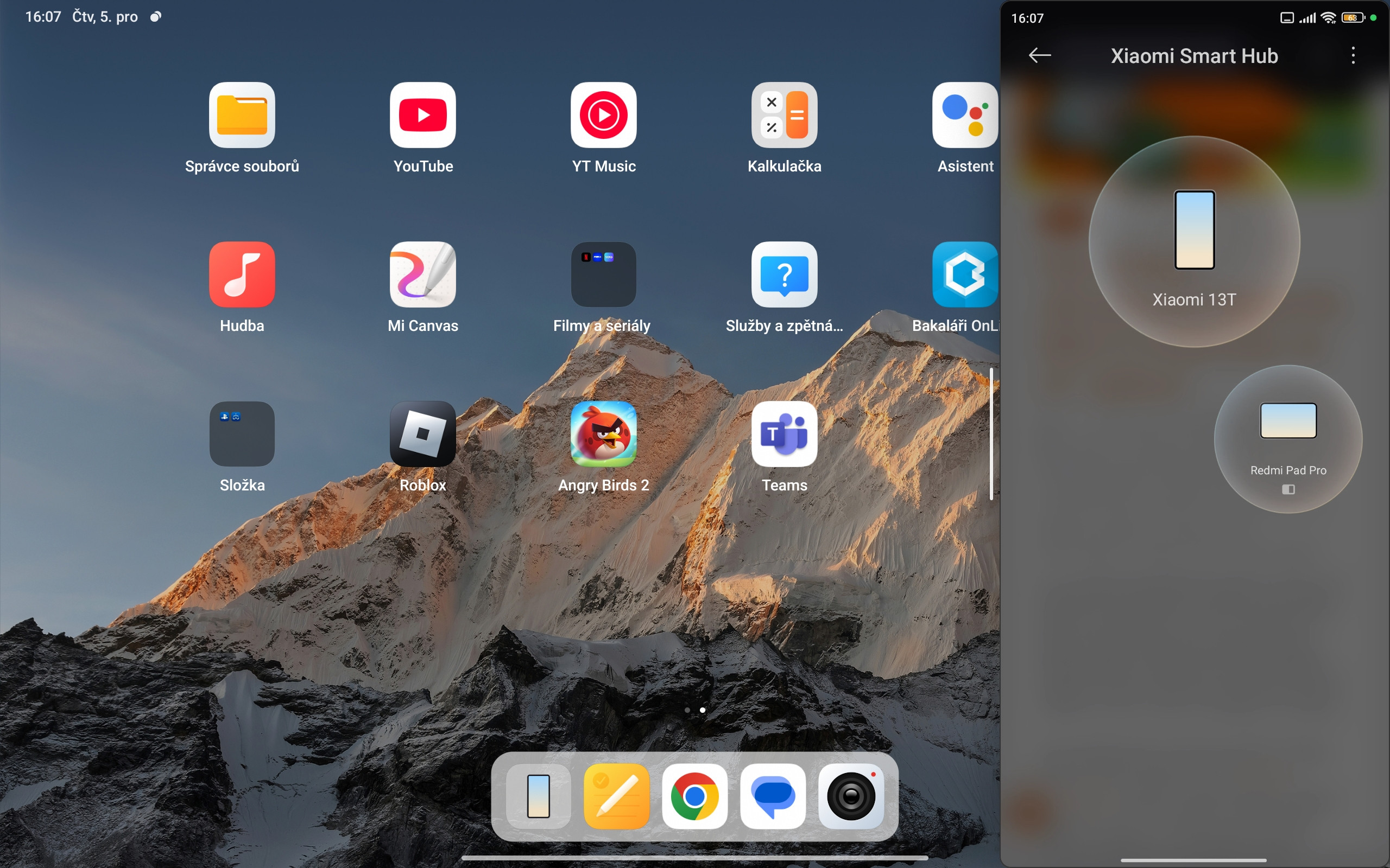Tak dneska z ničeho nic vidím ikonu Xiaomi Smart hub a začne se sdílet obrazovka mobilu na tablet a zařízení se vidí