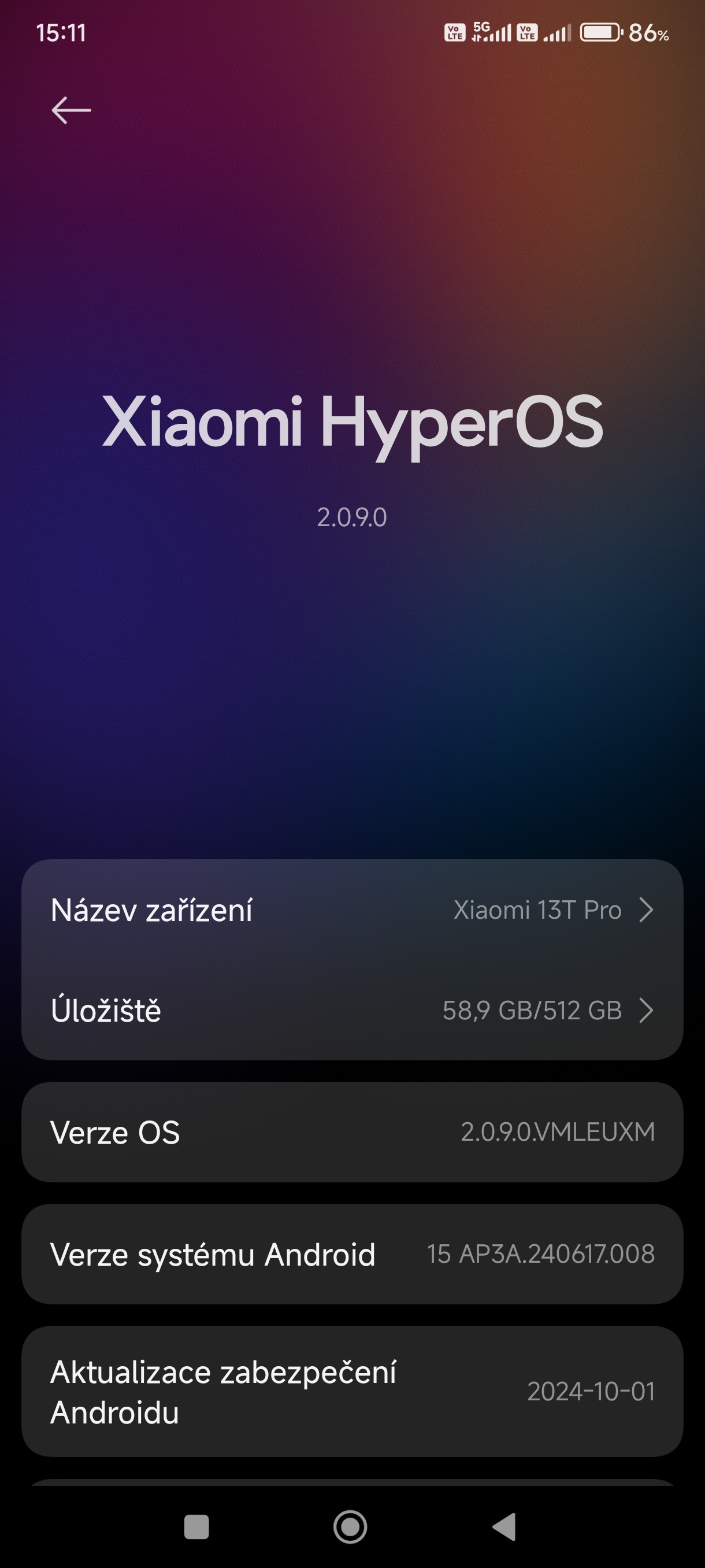 Včera se mi též aktualizoval telefon Xiaomi 13T Pro na Xiaomi HyperOS 2.0.9.0. Je fakt, že jsem měl beta verzi Androidu 15…