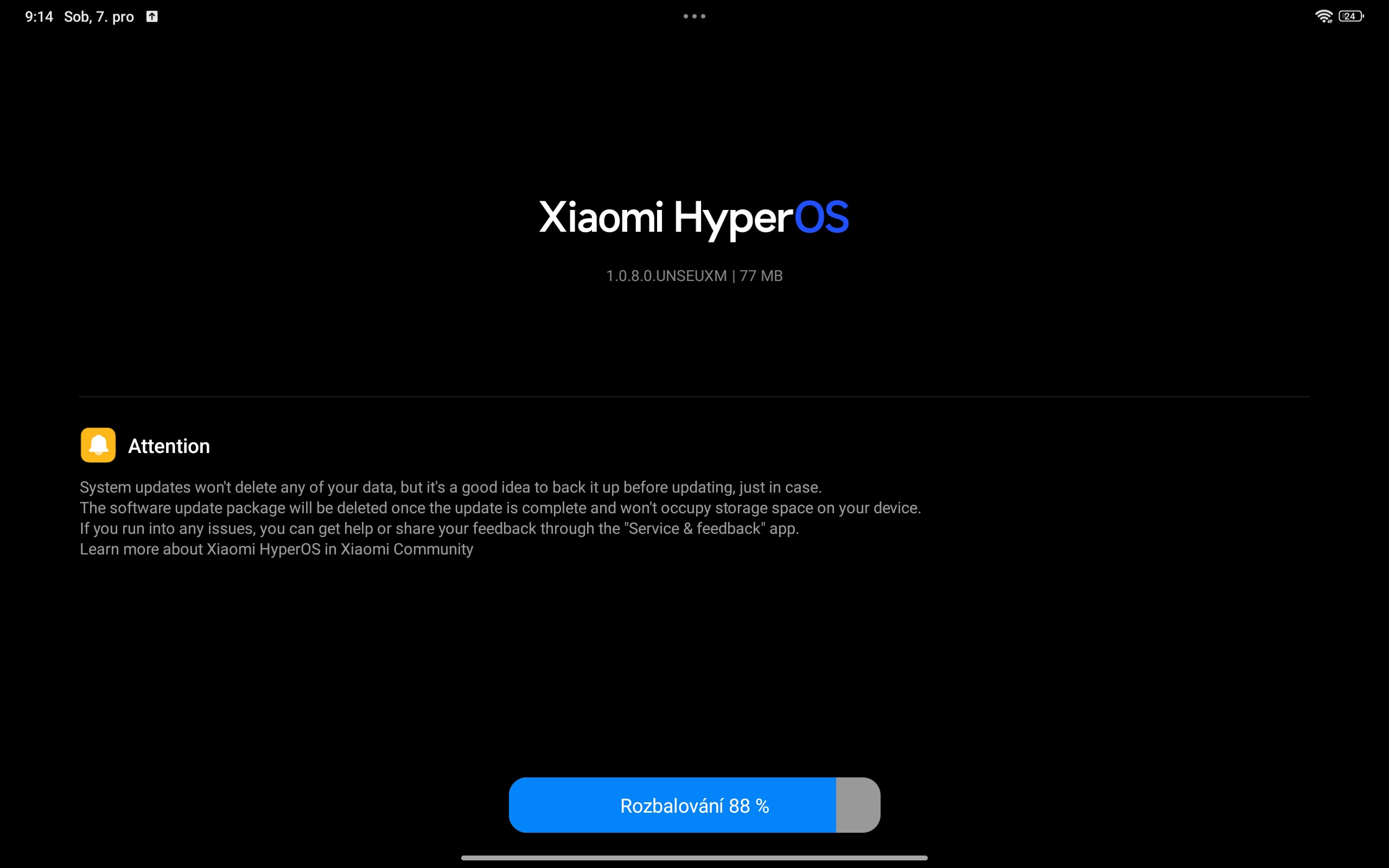 • Xiaomi Pad 6S Pro 12.4 (evropská verze) dostává od 1. prosinec 2024 aktualizaci na OS1.0.9.UNXEUXM. Jedná se o nadstavbu HyperOS ve verzi 1.0 postavenou na Androidu 14.