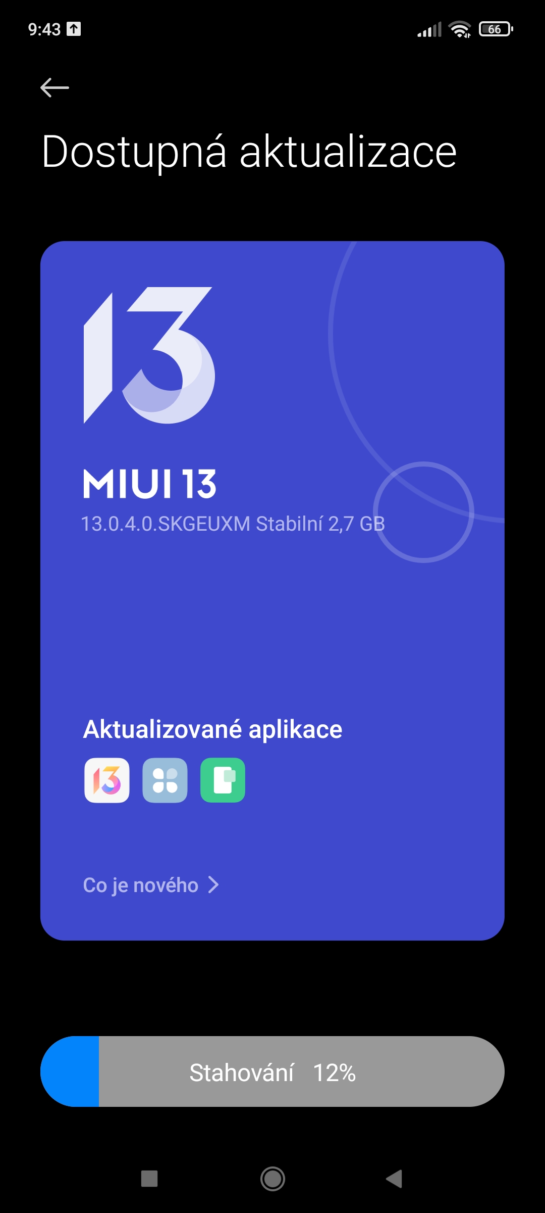 Právě teď jsem dostal aktualizaci na android 12 a MIUI 13 Poco X3 Pro.