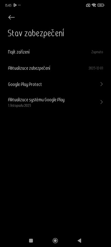 Dobrý den pane Martine. Vůbec se neznepokojujte. Google má svoji Aktualizaci systému Google Play opravdu jako poslední, nejnovější datovanou k 1. listopadu 2023. Mám to tak na svých dvou telefonech Redmi Note 10 Pro EEA (s MIUI 14 / A 13) i na třetím mobilu POCO F5 Pro EEA, který již dostal aktualizaci HyperOS. Jediné co můzete udělat, tak to dělám já, že třeba obden vlezu do Nastavení mobilu > Stav zabezpečení > Aktualizace systému Google Play > rozkliknu tuto položku a dám Vyhledat aktualizace. Buď vám to nabídne aktualizaci > stažení > restart telefonu a nebo vám to zahlásí, že máte aktuální Aktualizaci. Tady vám posilám screenshoty ze svého POCO F5 Pro EEA