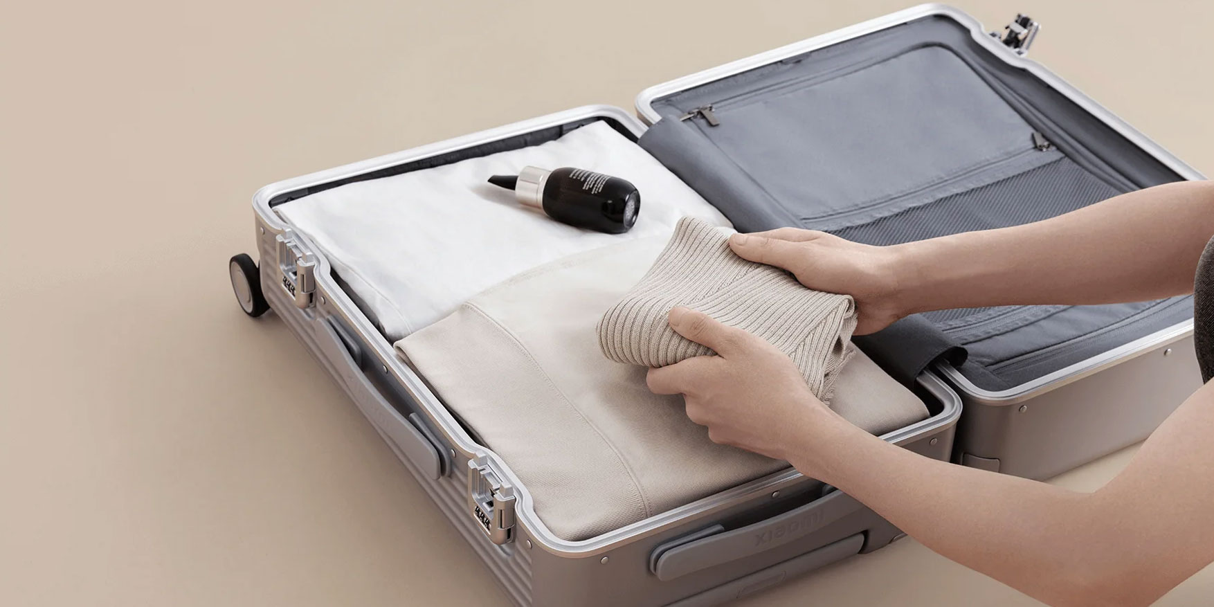 Kufry Xiaomi Aluminum Frame Luggage jsou vybaveny dvěma TSA zámky, které umožňují okamžité odemknutí zavazadla. Tradiční složité zipy byly v tomto případě nahrazeny snadno použitelnými zámky, které se otevírají pouhým stisknutím, což usnadňuje a urychluje přístup k uloženým věcem.