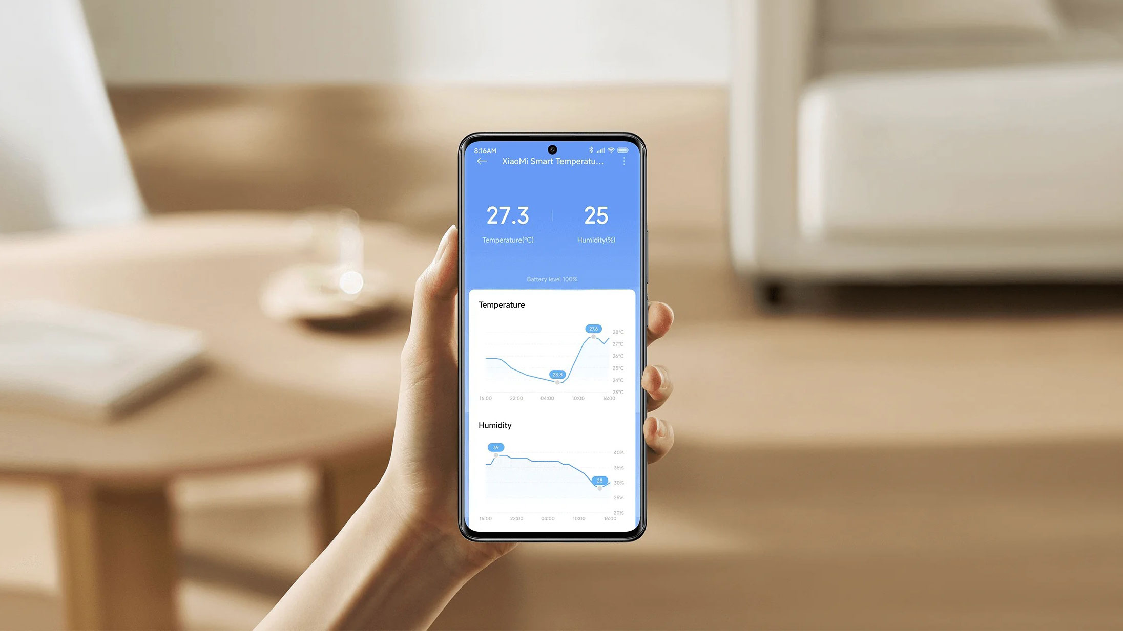 Pro komunikaci s okolím využívá tento malý pomocník technologii Bluetooth Low Energy 5.0. Jak napovídá název, jedná se o energeticky velmi úsporný standard, který je klíčový právě pro dosažení dlouhé výdrže. Primárně slouží pro propojení s chytrým telefonem a aplikací Xiaomi Home, kde můžete sledovat historická data a provádět nastavení.