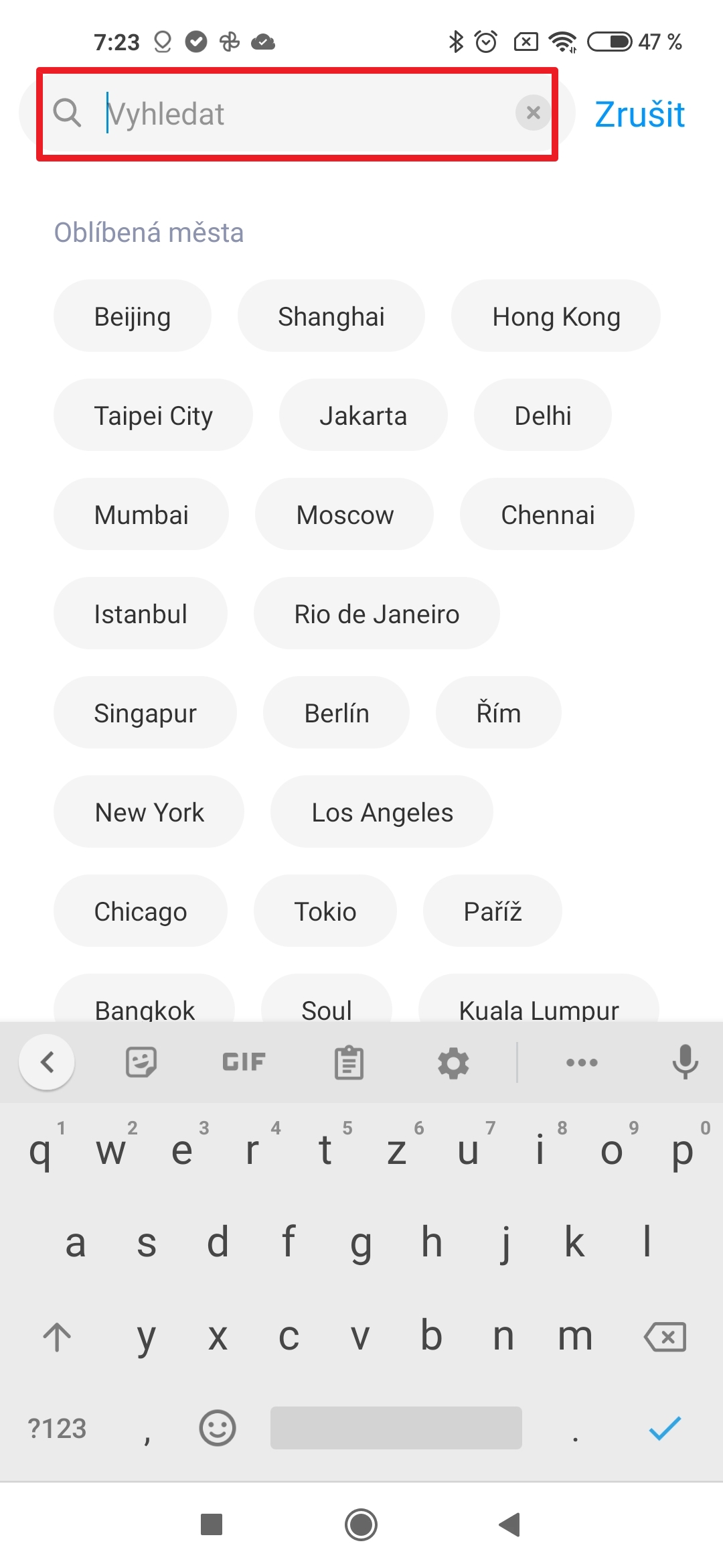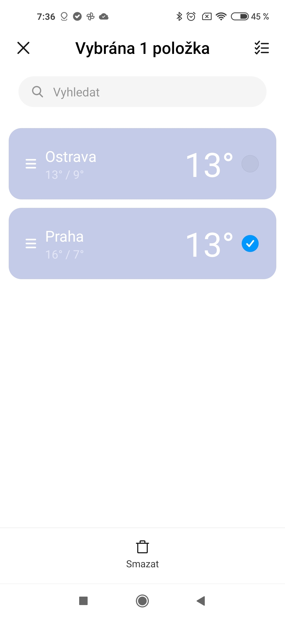 Když na něj klepnete, ocitnete se v sekci Spravovat města, kde pomocí vyhledávače najdete kýžené místo. Tlačítkem plus ho pak přidáte do seznamu sledovaných míst. Když v tomto seznamu podržíte prst na nějaké položce, budete moci měnit jejich pořadí, případně smazat ty, které vás již nezajímají.