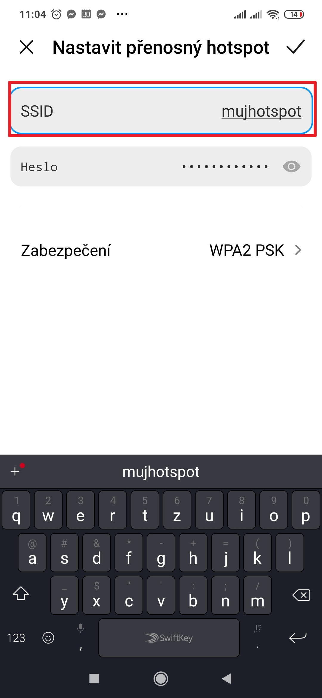 5. Jako první vyplňte SSID – to je název Wi-Fi, pod který bude váš hotspot viditelný z ostatních zařízení.
