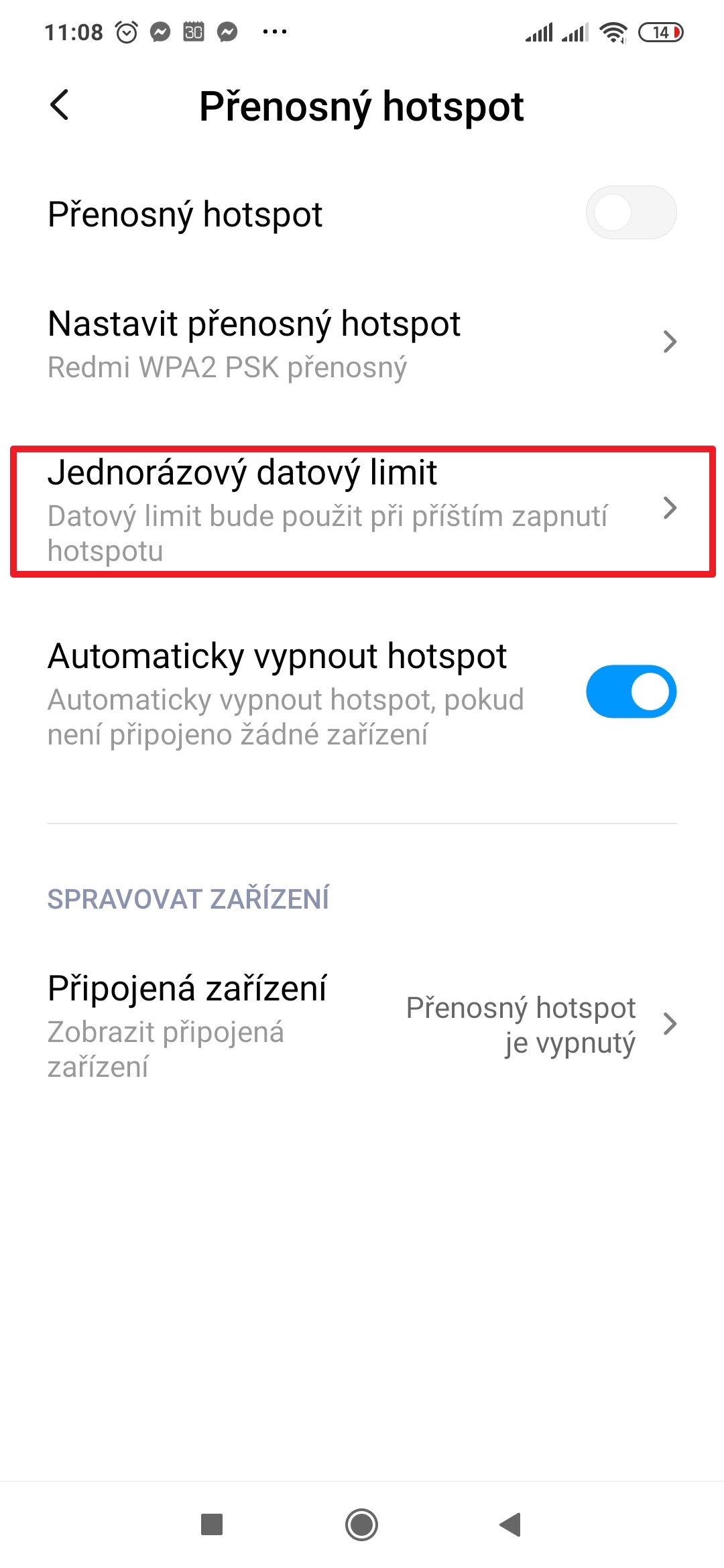 Jak nastavit limit dat hotspotu?